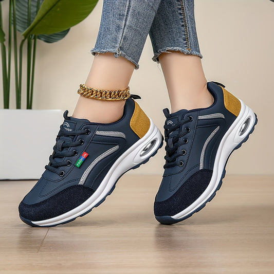AOPLUS Women's Fashion Sneakers - Lightweight, Comfortable, and Breathable Low-Top Sneakers with Air Cushion Support, White Blue Design, PU Cover Upper, Fabric Lining, All-Season Wear