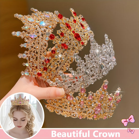 1pc Lemon Love Multi-Color Sparkling Rhinestone Crown Headband with Pink, Clear & Red Faux Faux Gemstones - Elegant Hair Accessory for Birthdays, Weddings, Pageants, Elegant Crown, Tiara For, Queen'S Crown, Crown For Woman, C