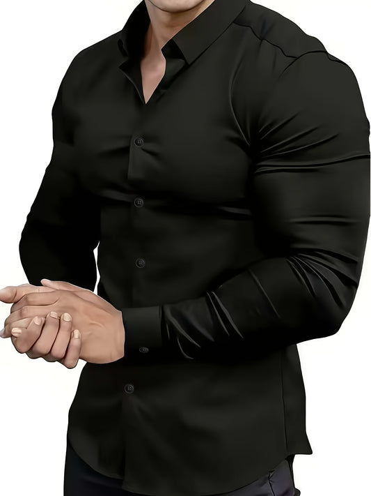 Men's Classic Solid Color Long Sleeve Dress Shirt - Regular Fit Point Collar, Non-Stretch Fabric for Office, Business & Casual Wear, All-Season Versatile Wardrobe Staple, Everyday Comfort, Sleek Appearance, Easycare Material
