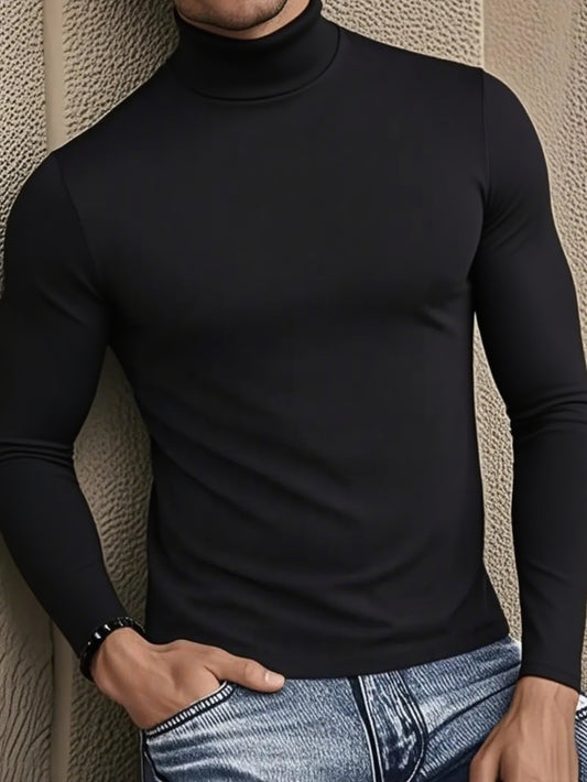 Men'S Long Sleeve T-Shirt - Elegant Half-High Neck, Minimalist Formal & Everyday Shirt for Office, Events, Outings - Easy-Care Everyday Essential Top, Versatile Clothing, Modern Look, Durable Construction, Stylish Blouse, Pro