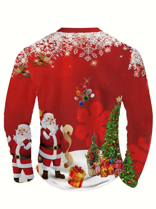 Men's Christmas Santa Claus 3D Digital Print Shirt with Metal Zipper Collar - Machine Washable Long-Sleeve Top, Festive Holiday Sweater for Parties, Daily Wear & Gifts for men