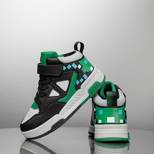 Youngsters' High-Top Sneakers with Color Block Design - Breathable, Non-Slip & Durable for Boys and Girls - Perfect for Outdoor Activities & Casual Attire