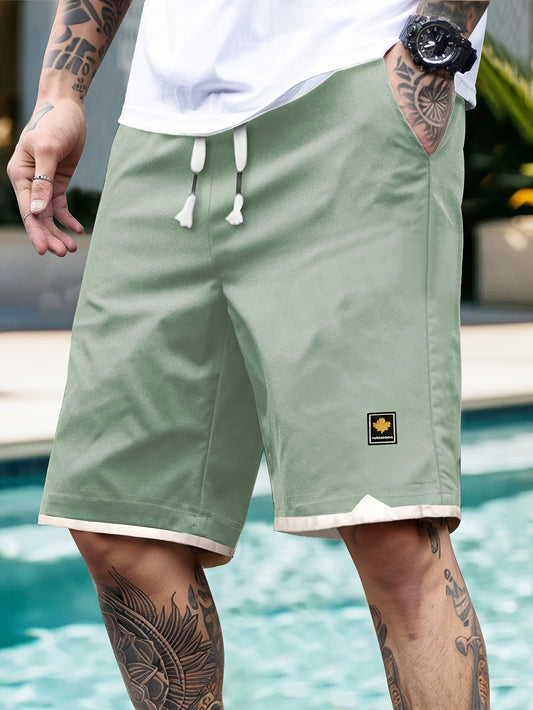 Trendy Color-Blocked Men'S Casual Sports Shorts with Drawstring Pockets And Prints, Perfect for Outdoor Activities And Leisure in The Summer.