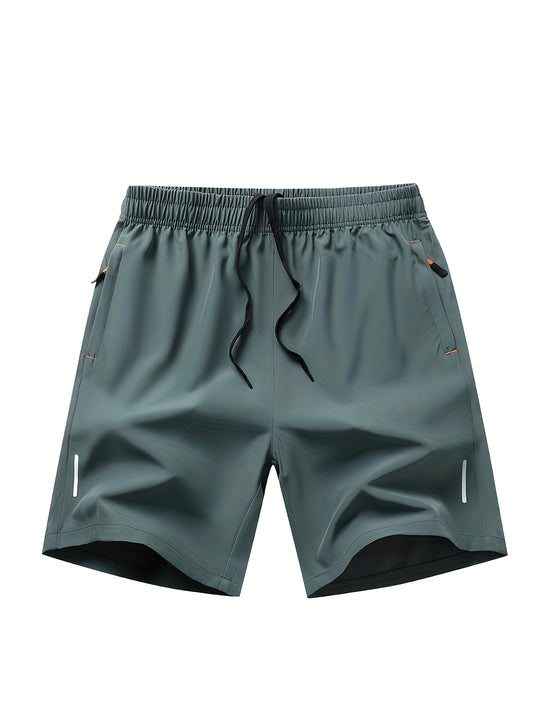 Men'S Ice Sliky Fiber Fabric Running Shorts - Breathable, Wrinkle-Resistant Athletic Shorts with Drawstring Waist & Zipper Pockets for Gym, Tennis, Skateboarding, Yoga, Gym Shorts, Yoga Apparel, Sporty Style, Antislip Constru