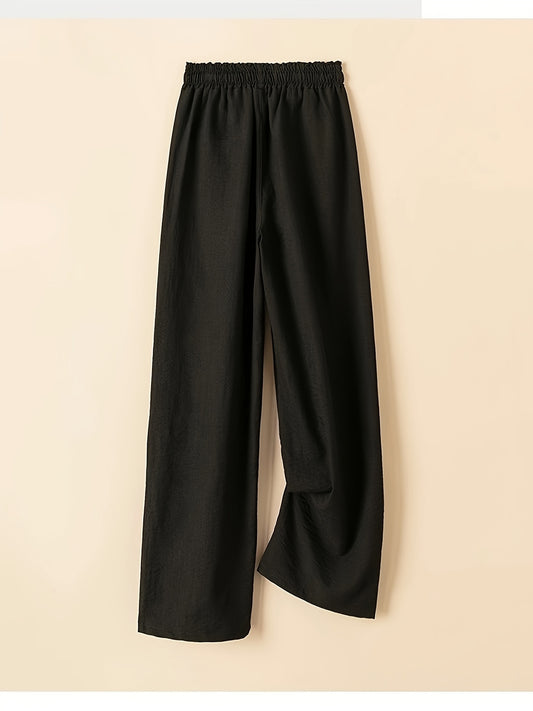 Women'S Stylish Black Wide-Leg Pants with Elastic Waistband - Casual All-Season Drawstring Pockets, Perfect for Weekends and Casual Attire, Casual Attire Pants|Wide Leg Fashion|Elastic Waistband Pants