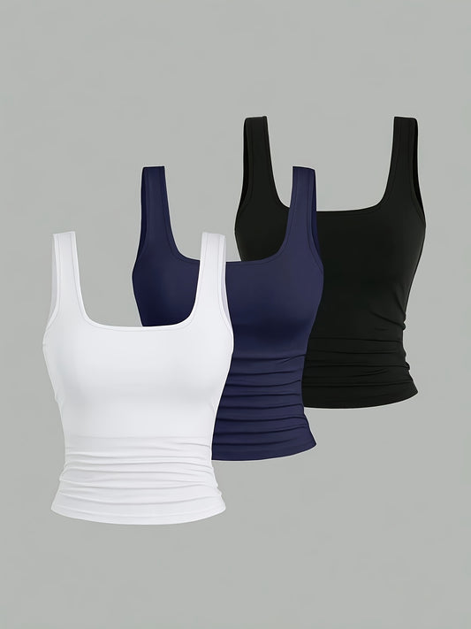 Three-Piece Solid Color Tank Top Set, Summer Casual Women'S Top, Women'S Clothing