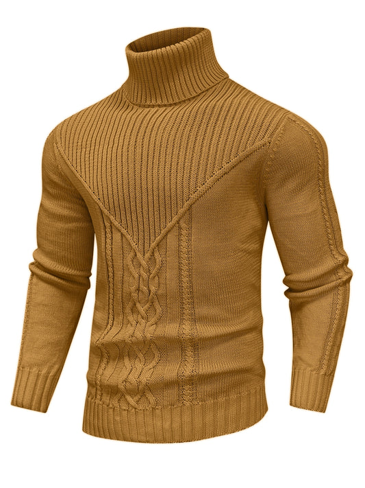 Men's Winter Knit Sweater Thickened Warm High Neck Pullover - Soft Cable Knit Design Solid Color Casual Cold Weather Sweaters for Office & Casual Attire (Regular Fit)