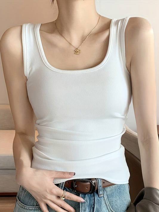 Solid Color Casual, U-neck, Wide Shoulder Vest, Women's Vest, Inner Wear, Versatile Outer Wear, Sleeveless Vest, Comfortable and Simple, Spring, Summer and Autumn Top, Can Be Worn in Winter, Christmas, Valentine's Day