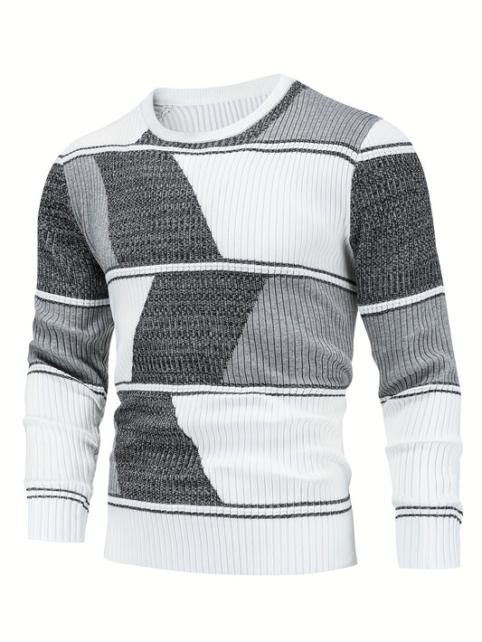 Men's Sweater with Color Block Design, Slim Fit, Crew Neck Pullover, Autumn/Winter Style