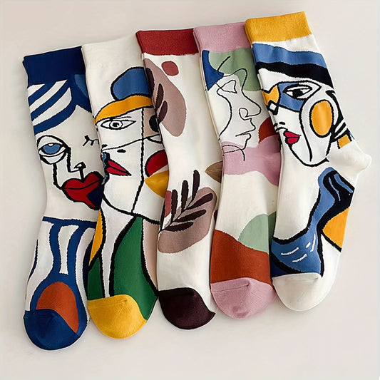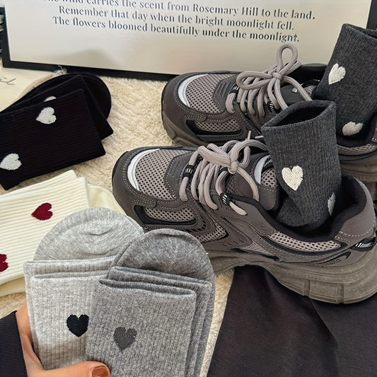 5 Pairs High-Quality Heart Socks Women's Fashionable Breathable Mid-Calf Socks