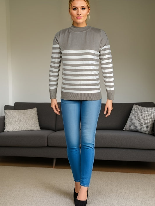 Striped Crew Neck Pullover Sweater, Casual Long Sleeve Versatile Sweater, Women's Clothing