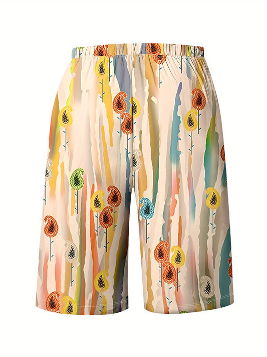 Women's Plus Size Floral Print Drawstring Shorts with Pockets - Lightweight Polyester Blend, Machine Washable, Perfect for Spring & Summer Beach Outings