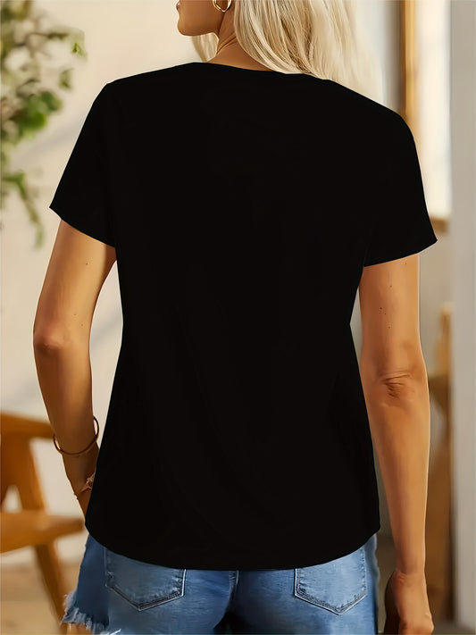 Women's Casual Sport T-Shirt, Round Neck, Heart And Happy Print, Short Sleeve, Soft Knit
