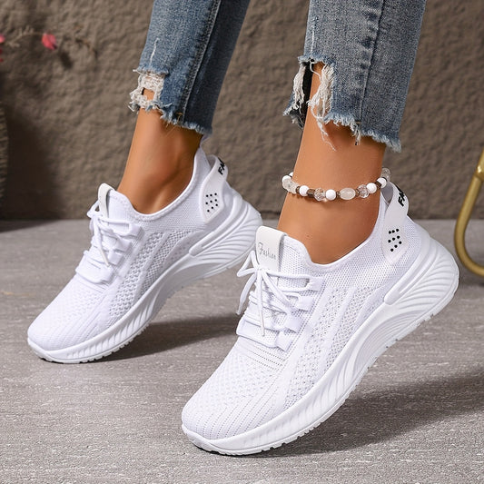 1 Pair Women'S Casual Mesh Running Shoes - Lightweight, Breathable, All-Season Low Top Sneakers with Lace-Up Closure, Solid Color, Comfortable Soft Sole, Fashionable Athletic Footwear