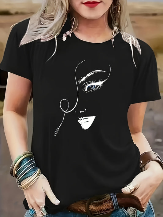 Women's short-sleeved round-neck turtleneck fashion T-shirt Women's clothing black comfortable outdoor top summer spring home Women's casual vacation sportswear print