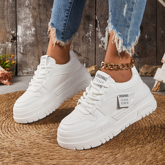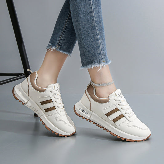 1 Pair Women'S Casual Lace-Up Sneakers - Solid Color Lightweight Low Top Shoes with Plain Toe, All-Season Comfort, Man-Made Upper & Insole, Fabric Inner, Rubber Sole - Korean Style Fashion Trainers