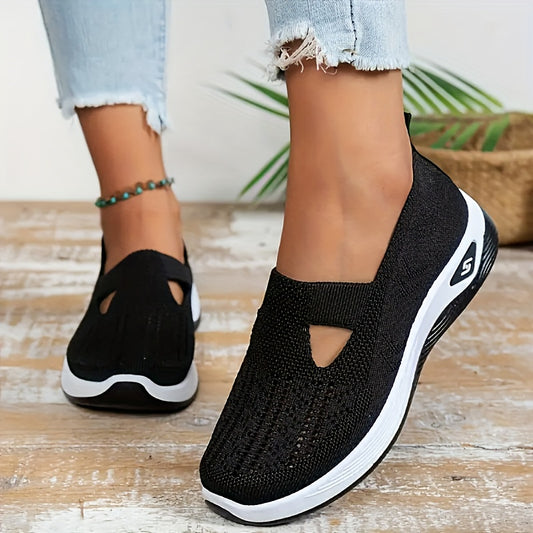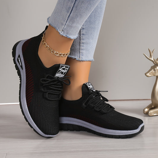 Women's Breathable Knit Running Shoes with Air Cushion - Lightweight Casual Sneakers, Black Mesh Upper, Comfortable Low-Top Design for All-Day Wear