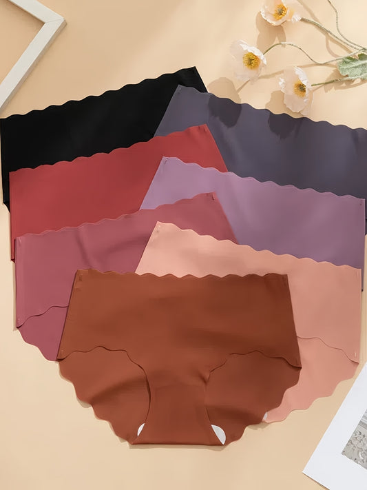 7pcs Seamless Ice Silky Briefs for Women - Breathable, Quick-Dry, Mid-Rise, Butt-Lifting, No Show Panties in Assorted Colors (Black, Purple, Orange, Pink, Beige) - Elegant Nylon Blend Fabric, Hand Wash Only, Cute Panties