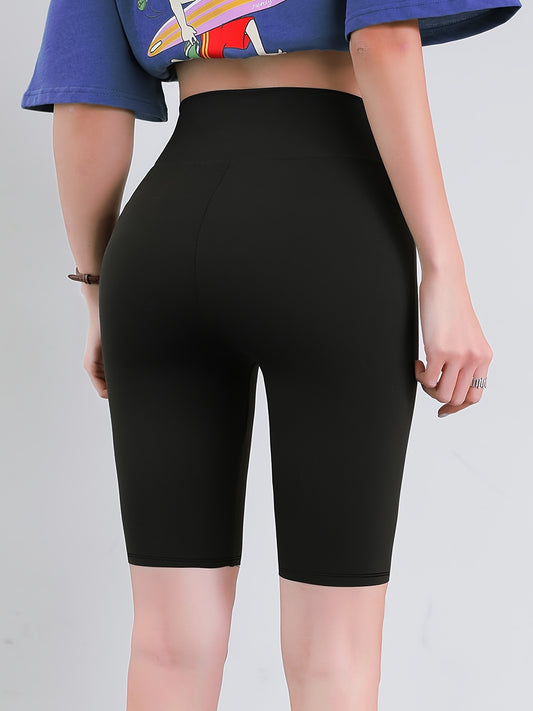 High-Waisted Women'S Fitted Shorts Made from a Blend of Polyester And Spandex, Featuring Stretchy Knitted Fabric, Solid Color, And Elastic Waistband, Perfect for Spring And Summer, Suitable for Fitness And Outdoor Leisure Wea