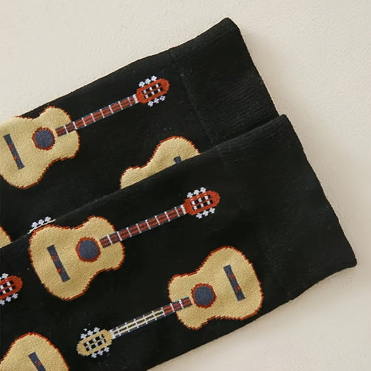 Guitar Print Socks, Trendy & Sports Mid Tube Socks, Women's Stockings & Hosiery