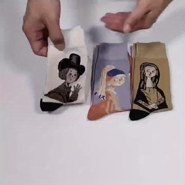 1/3/6 Pairs of Autumn and Winter Warm Retro Oil Painting Style European and American Personality Color Versatile Women's Socks