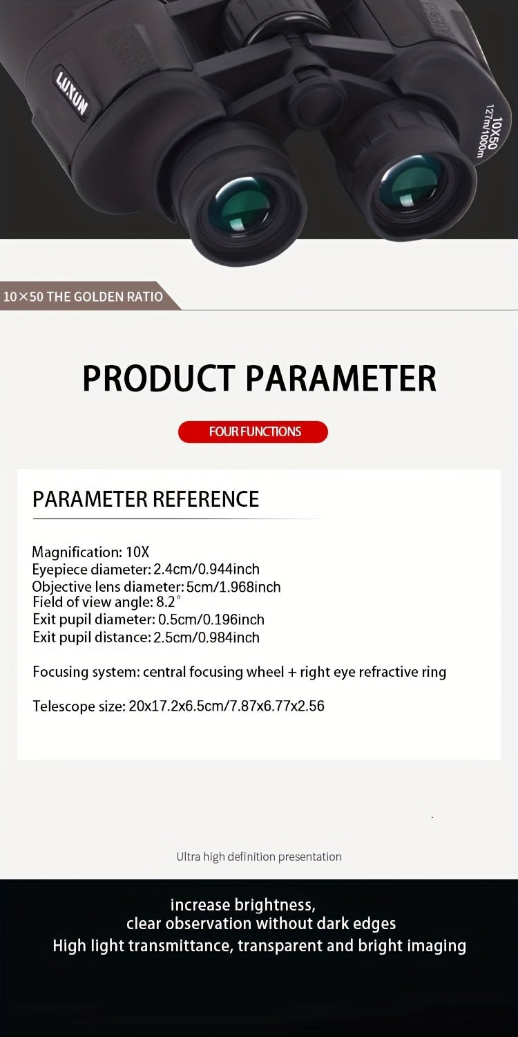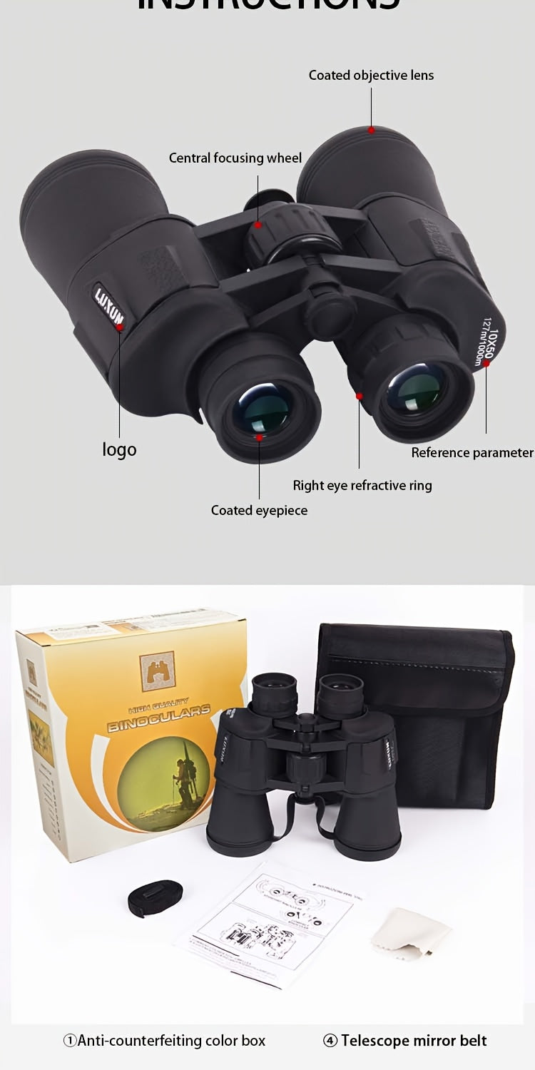 10X50 High Magnification Binoculars - Professional HD Optics for Concerts, Bird Watching, Sports Events & Hunting, Includes Portable Bag & Shoulder Strap, Durable Rubber Material, Compact Design for Easy Travel, Concerts, Bir