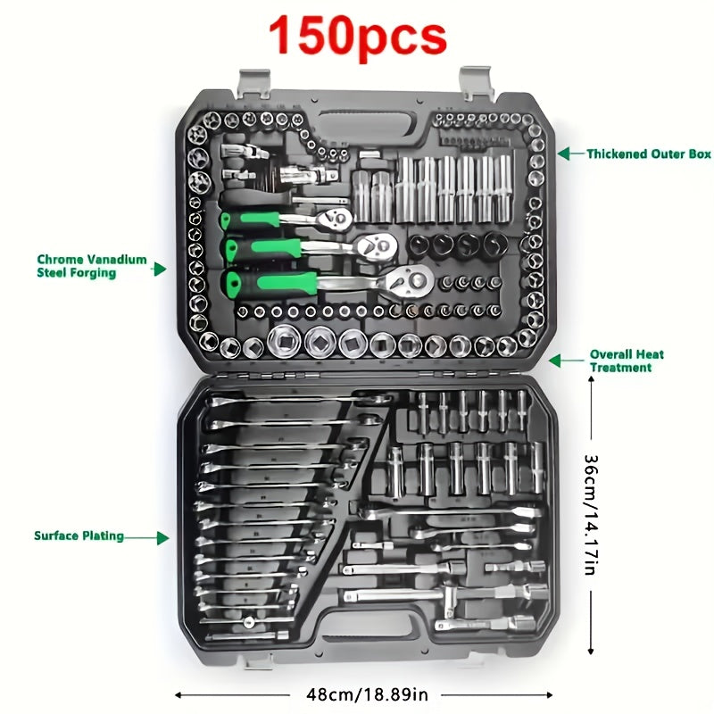 150/46pcs Professional All-in-One Auto Repair Tool Set Compatible for European- Heavy-Duty Alloy Metal Toolbox with Ratchet Torque Wrench, Hex Bit Screwdriver Kit, Multi-Size Car Mechanic Tool Kit for DIY& Professional Mechan