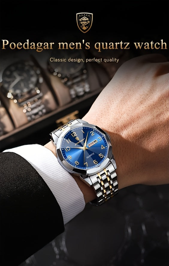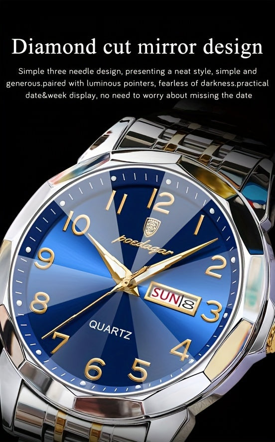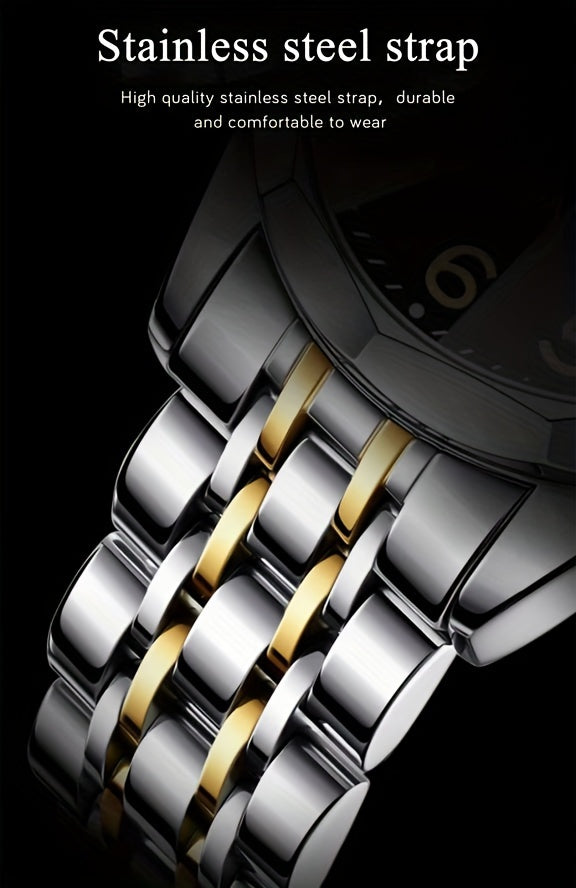 1pc BINBOND Men'S Fashion Watch, Luxury Dual Calendar Quartz Wristwatch, Business Style, Round Alloy Case, Stainless Steel Strap, Water-Resistant, Luminous Pointer Display, Battery Powered, Perfect for Valentine's, Christmas,
