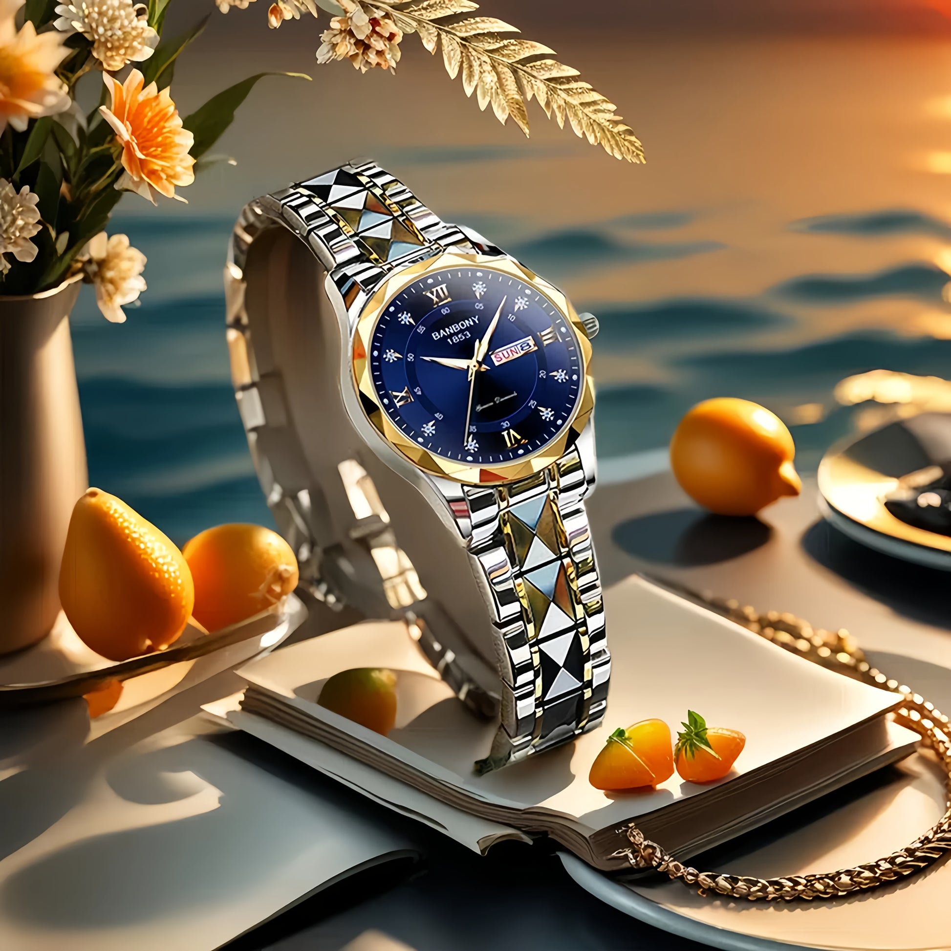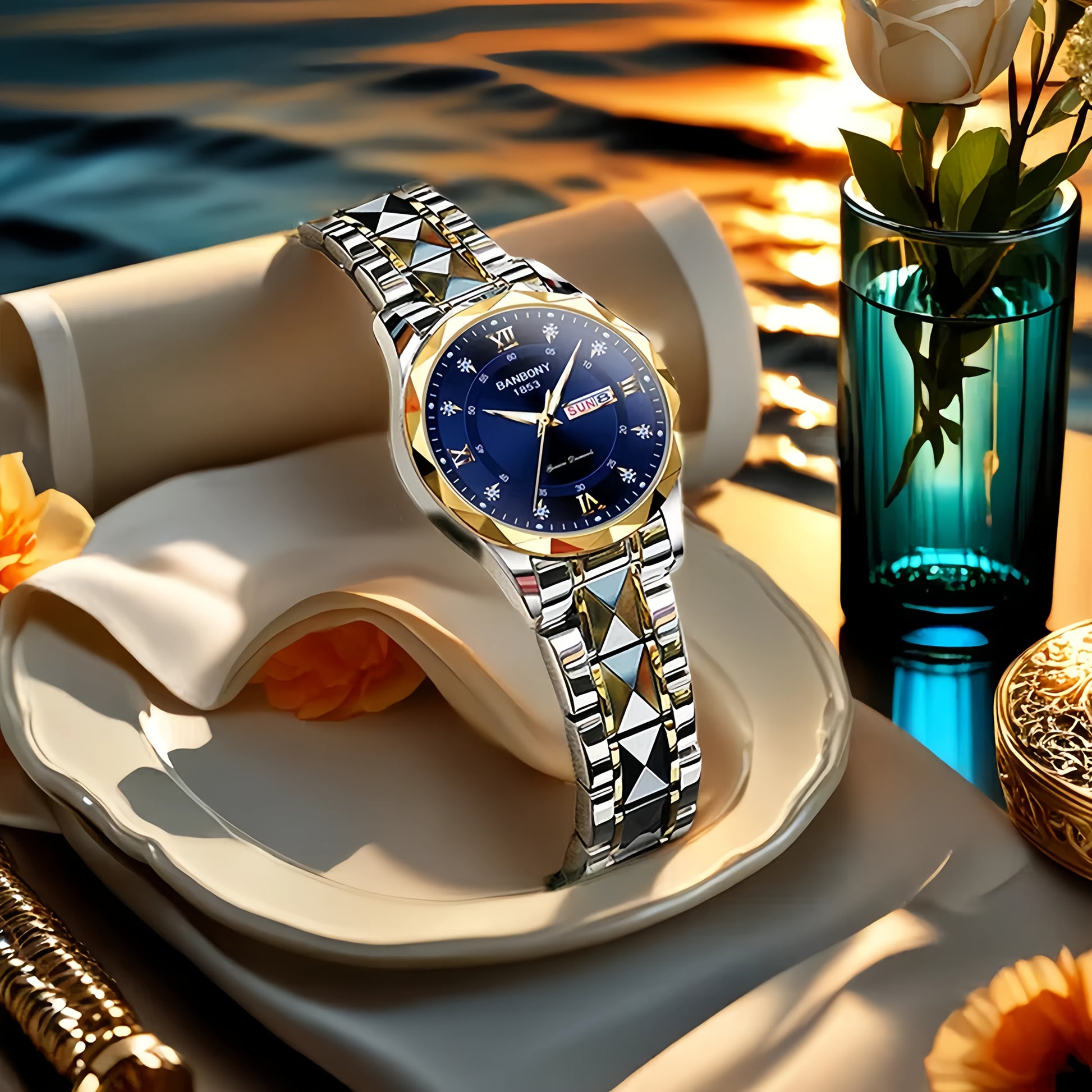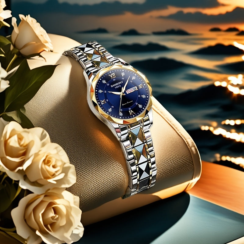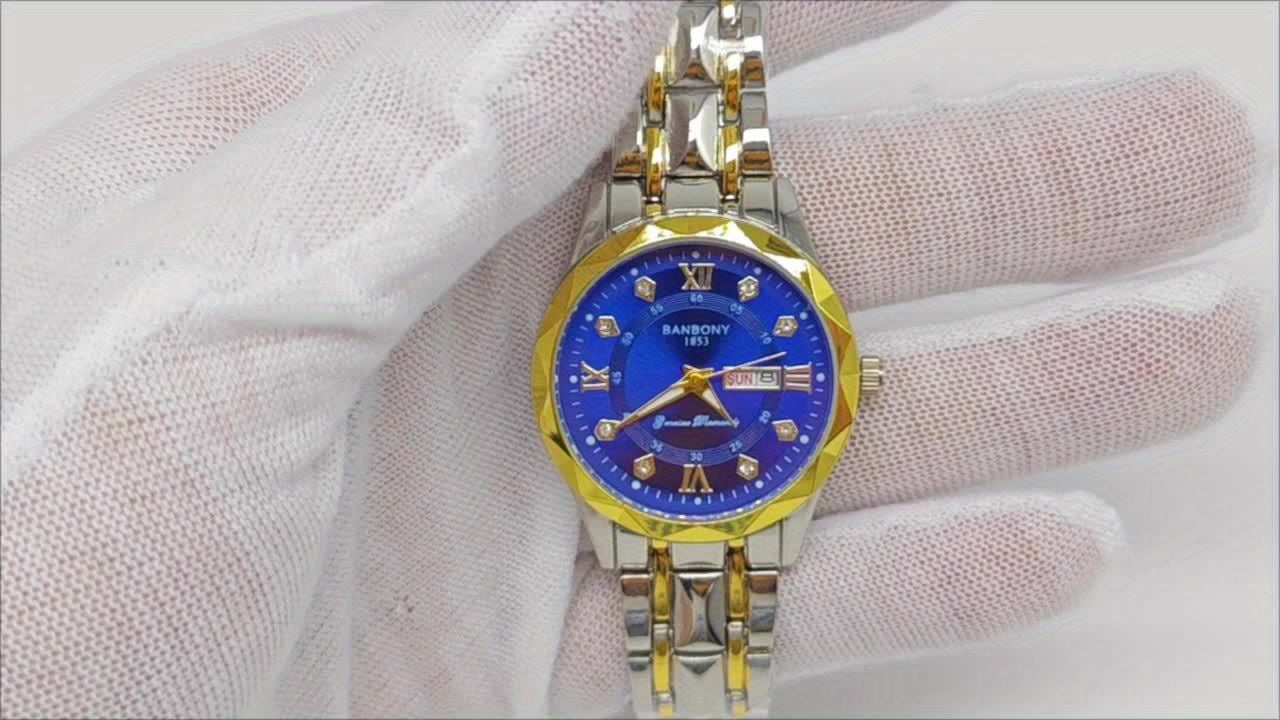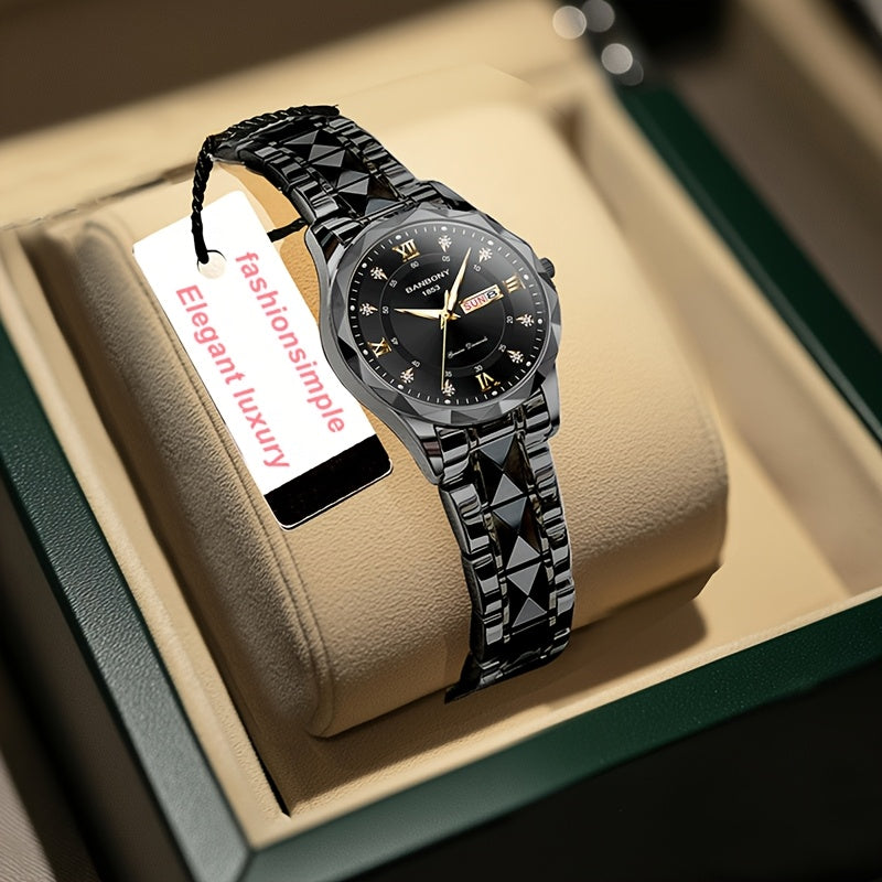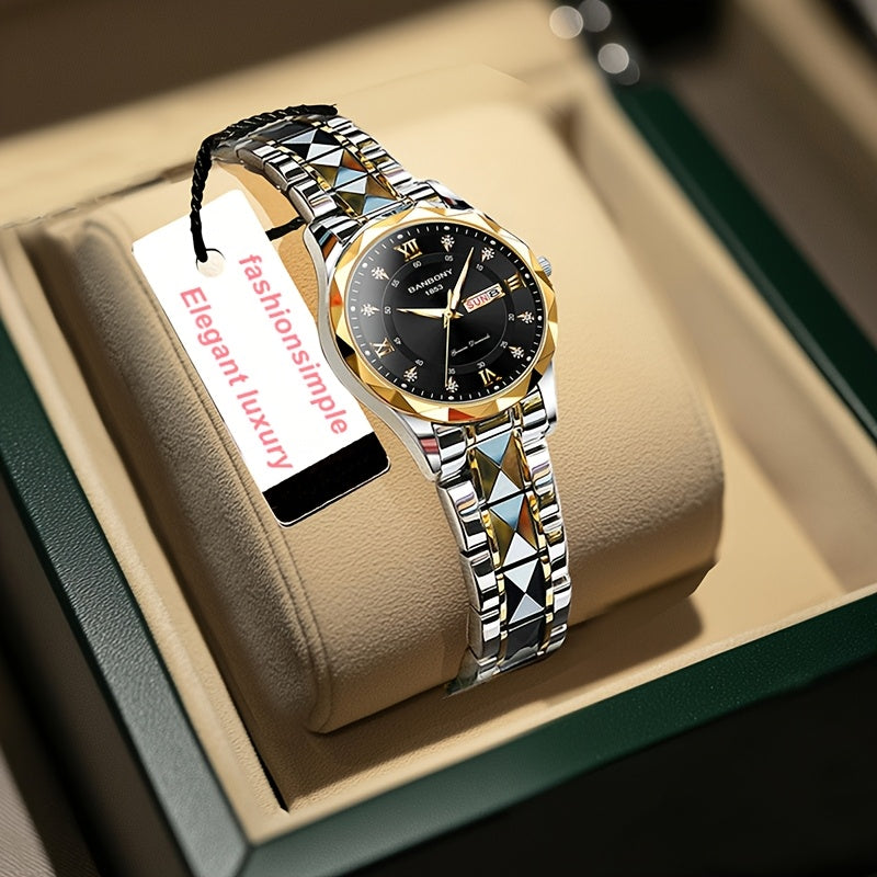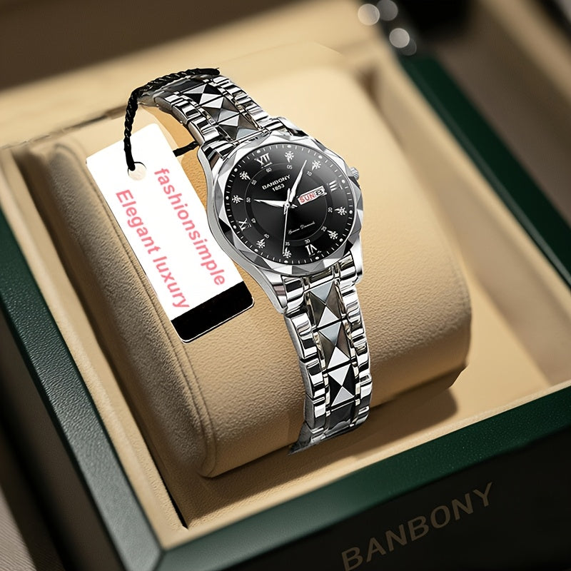 1pc Elegant BANBONY Stainless Steel Women'S Watch with Sparkling Rhinestones, Double Calendar, Glow-in-the-Dark Display, Waterproof - Ideal Gift for Birthdays, Anniversaries, and Special Occasions, Luxury Accessory | Elegant