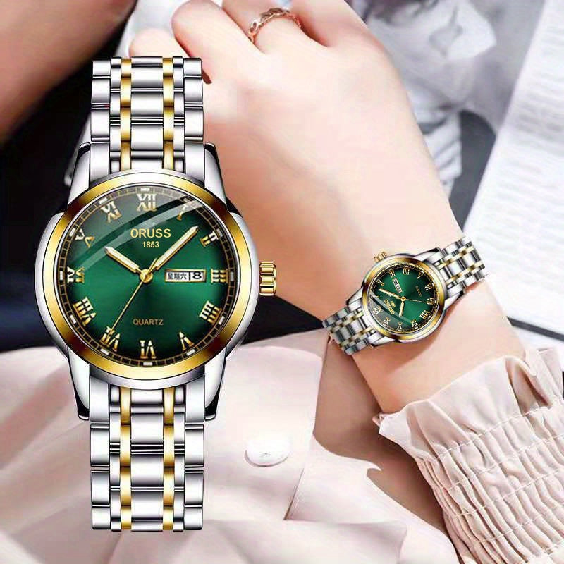 1pc Elegant Ladies' Quartz Wrist Watch, Luminous Dial, Classic Calendar, Roman Style, Stainless Steel Band, Alloy Case, Non, Non-Rechargeable Battery - Fashion Timepiece