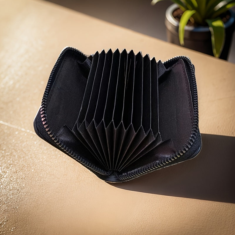 1pc Men's Anti-theft Accordion Card Holder, Multi-functional Zipper Small Wallet, Suitable For Office Workers