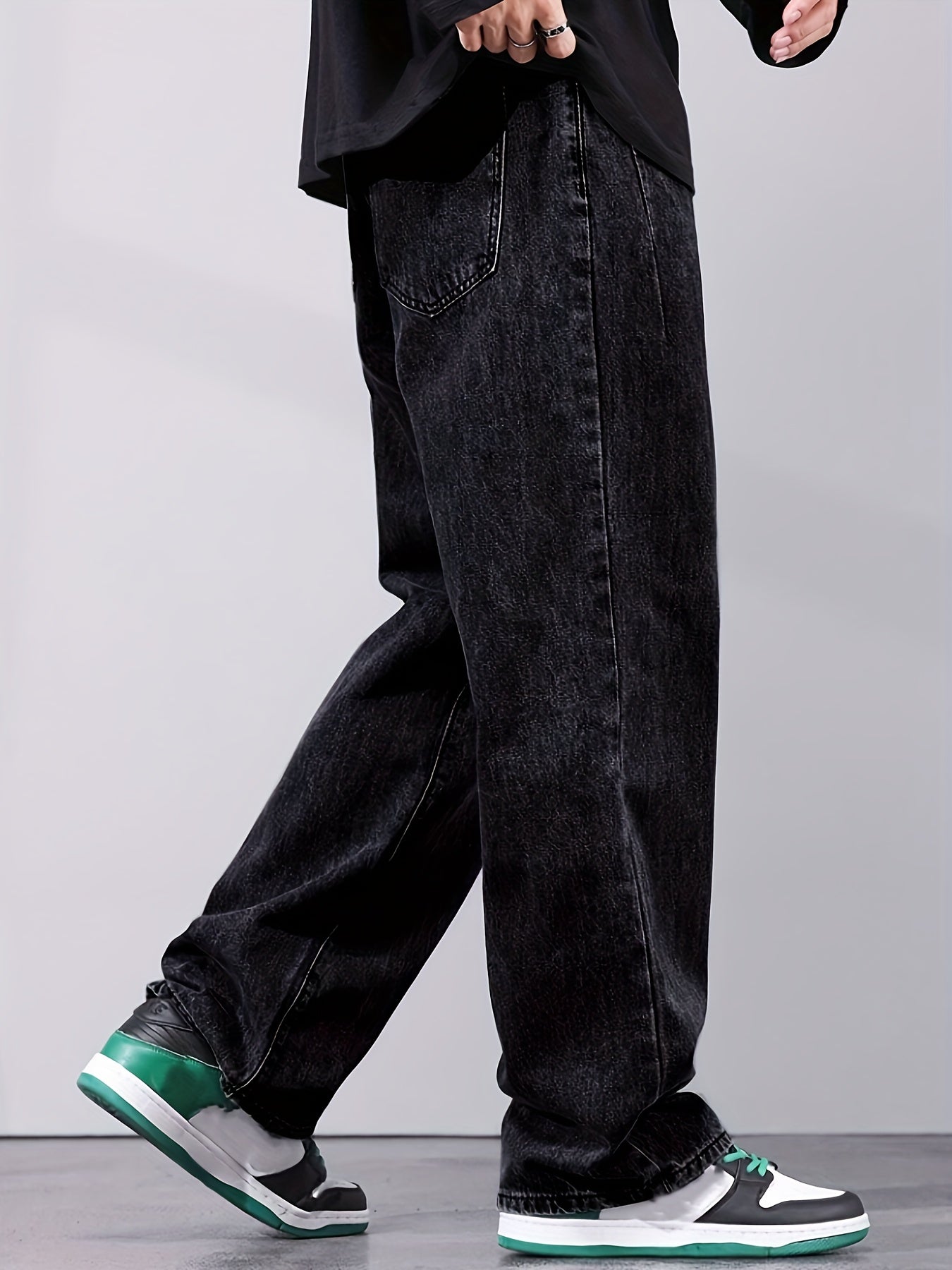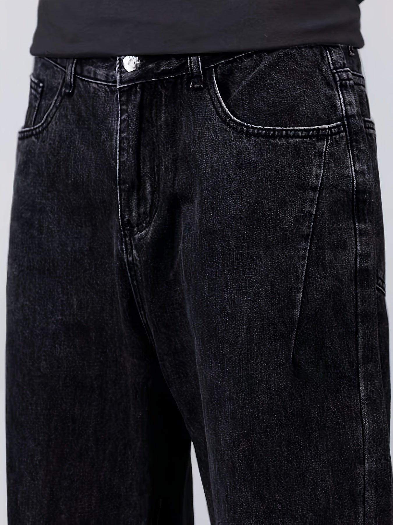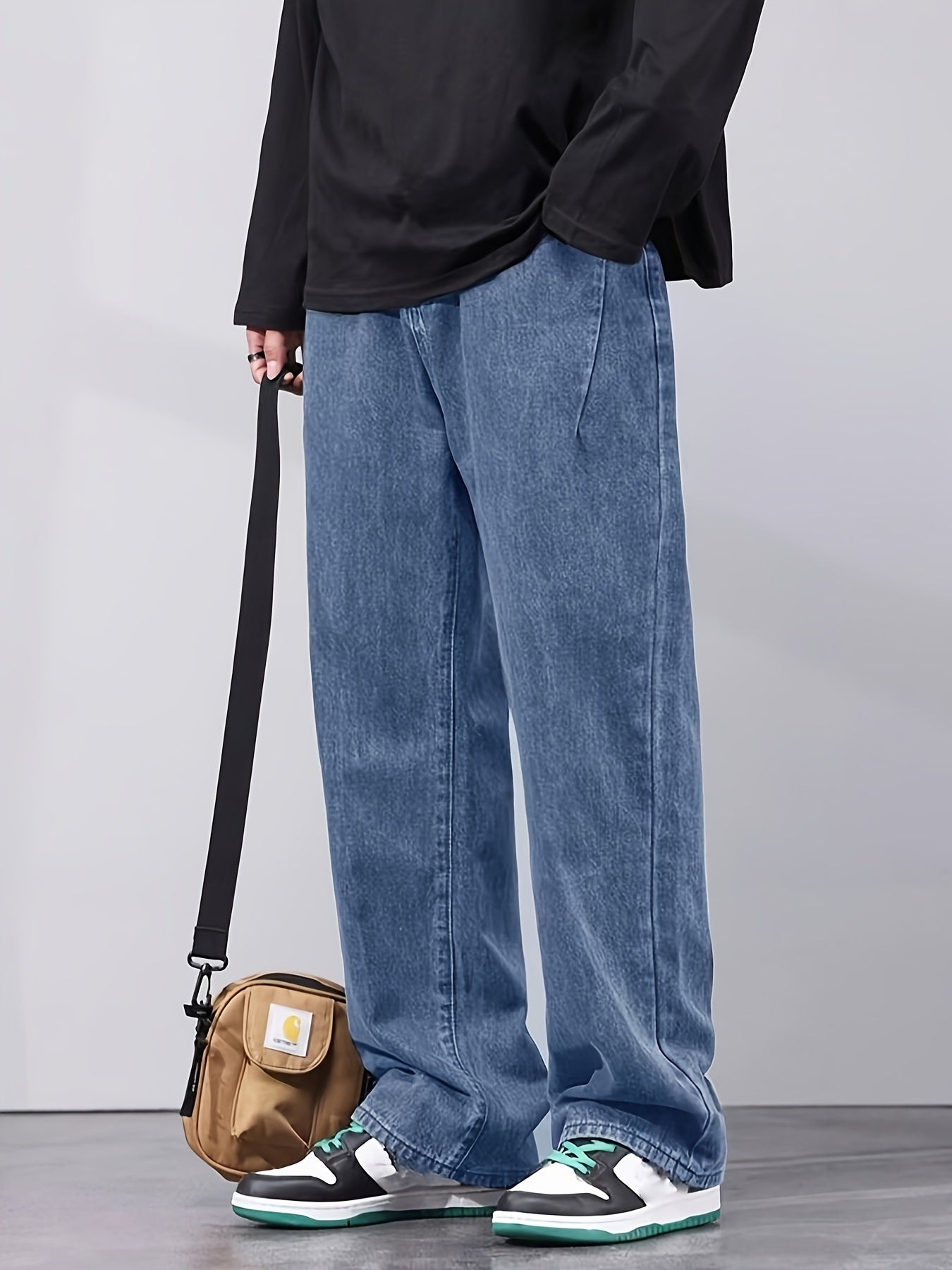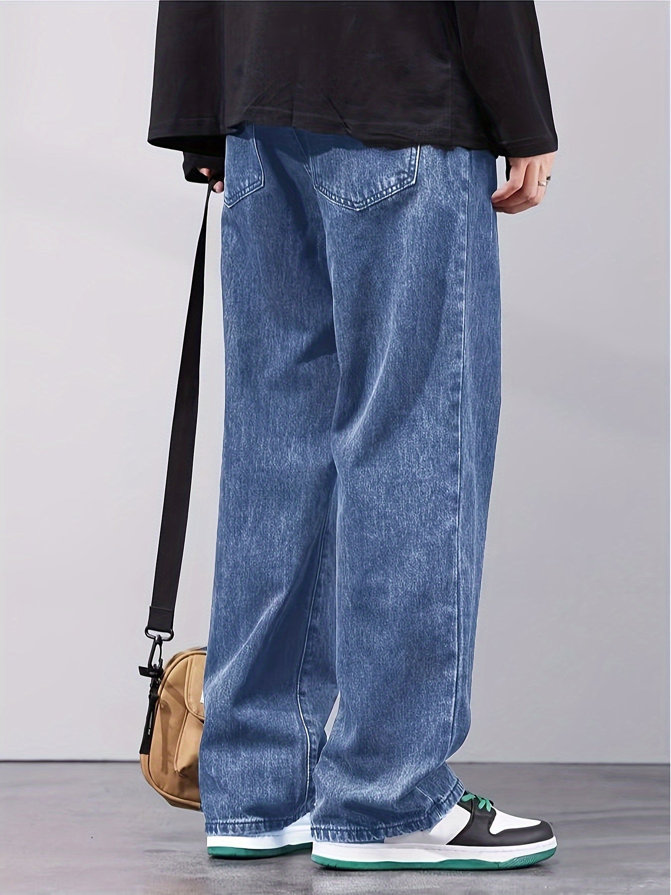 1pc Men'S Casual Denim Jeans - Classic Washed Straight-Leg Pants with Pockets, Non-Stretch Fabric, Regular Fit, All-Season Loose Denim for Adults, Casual Outing Style