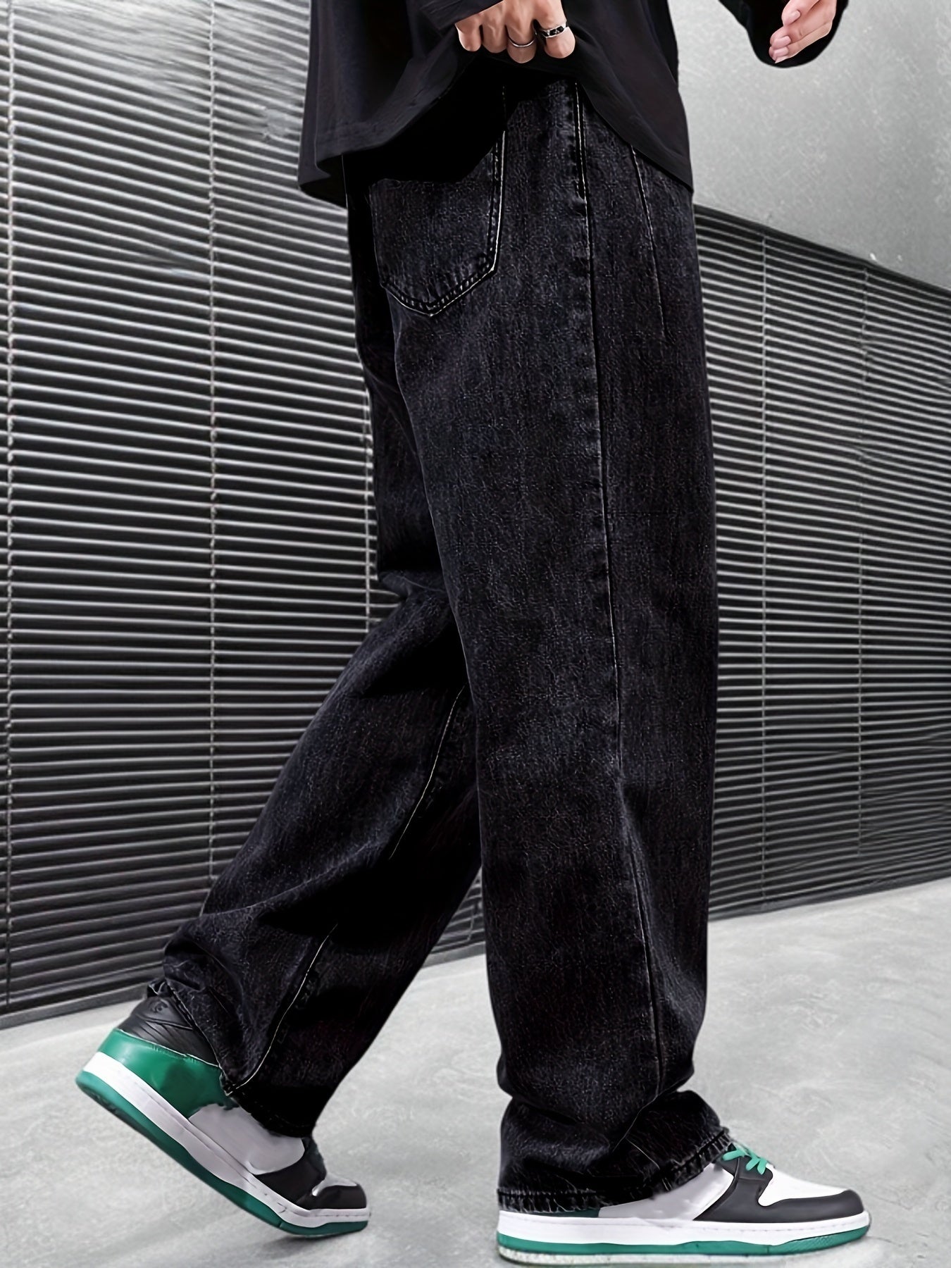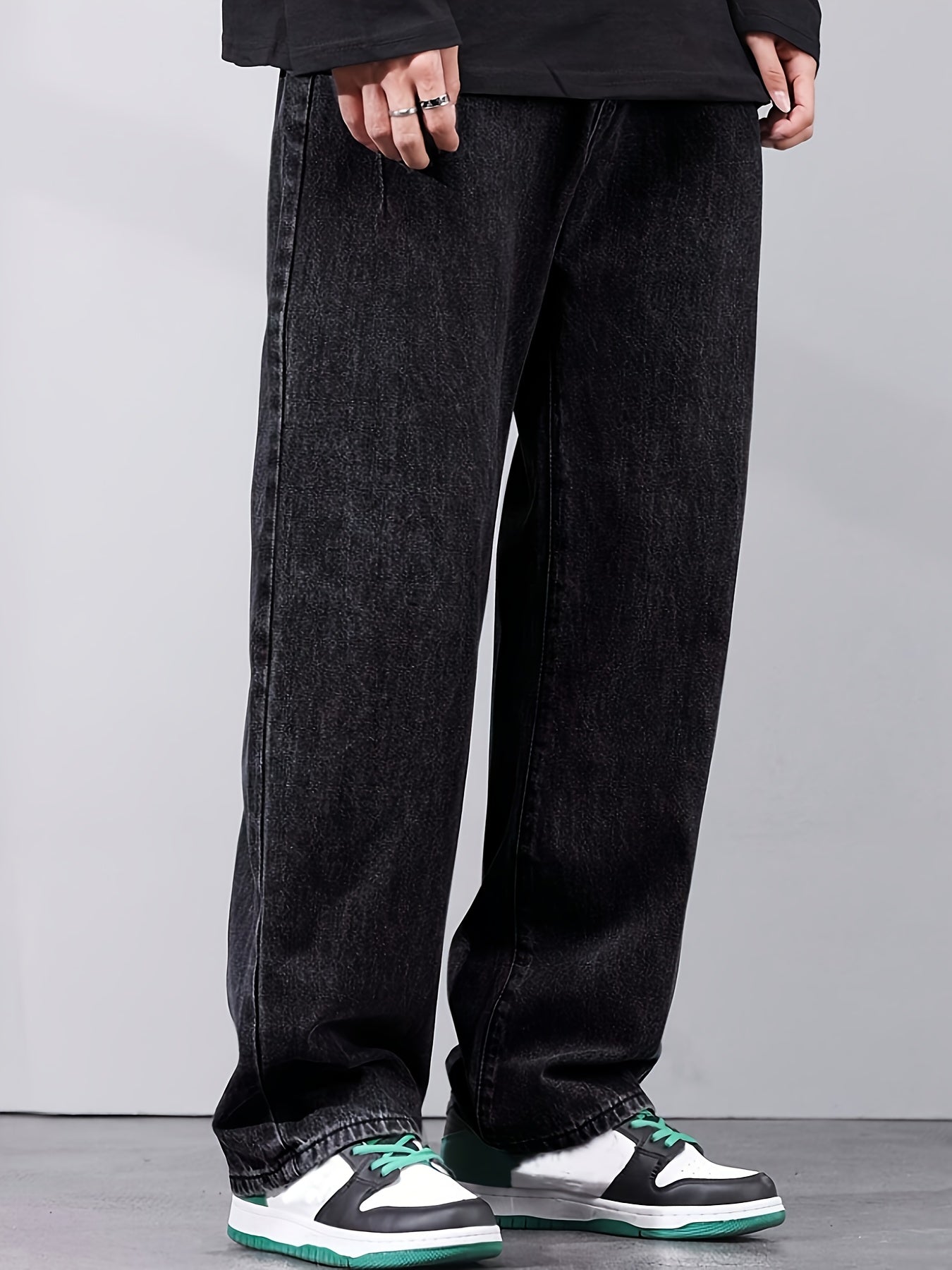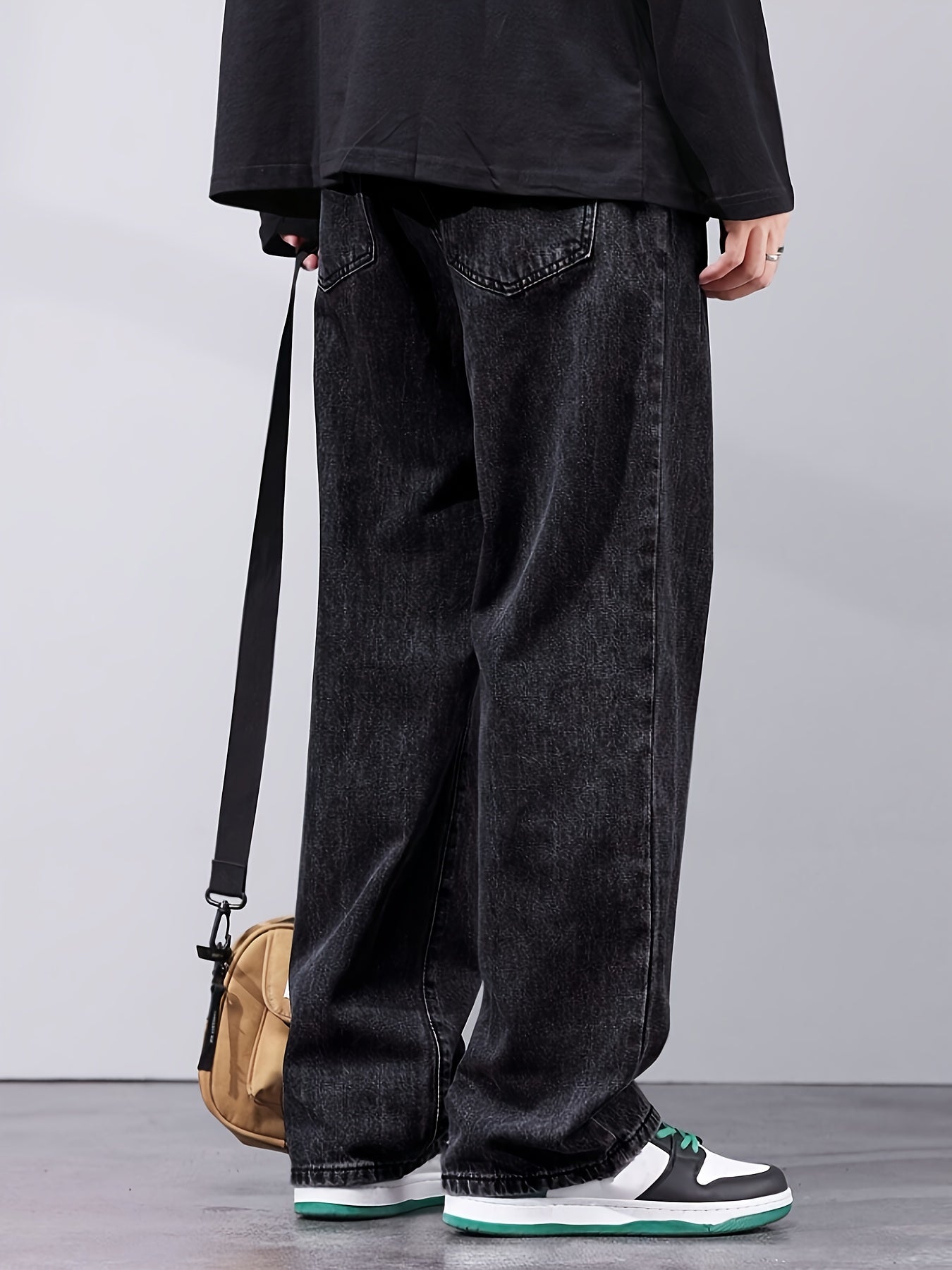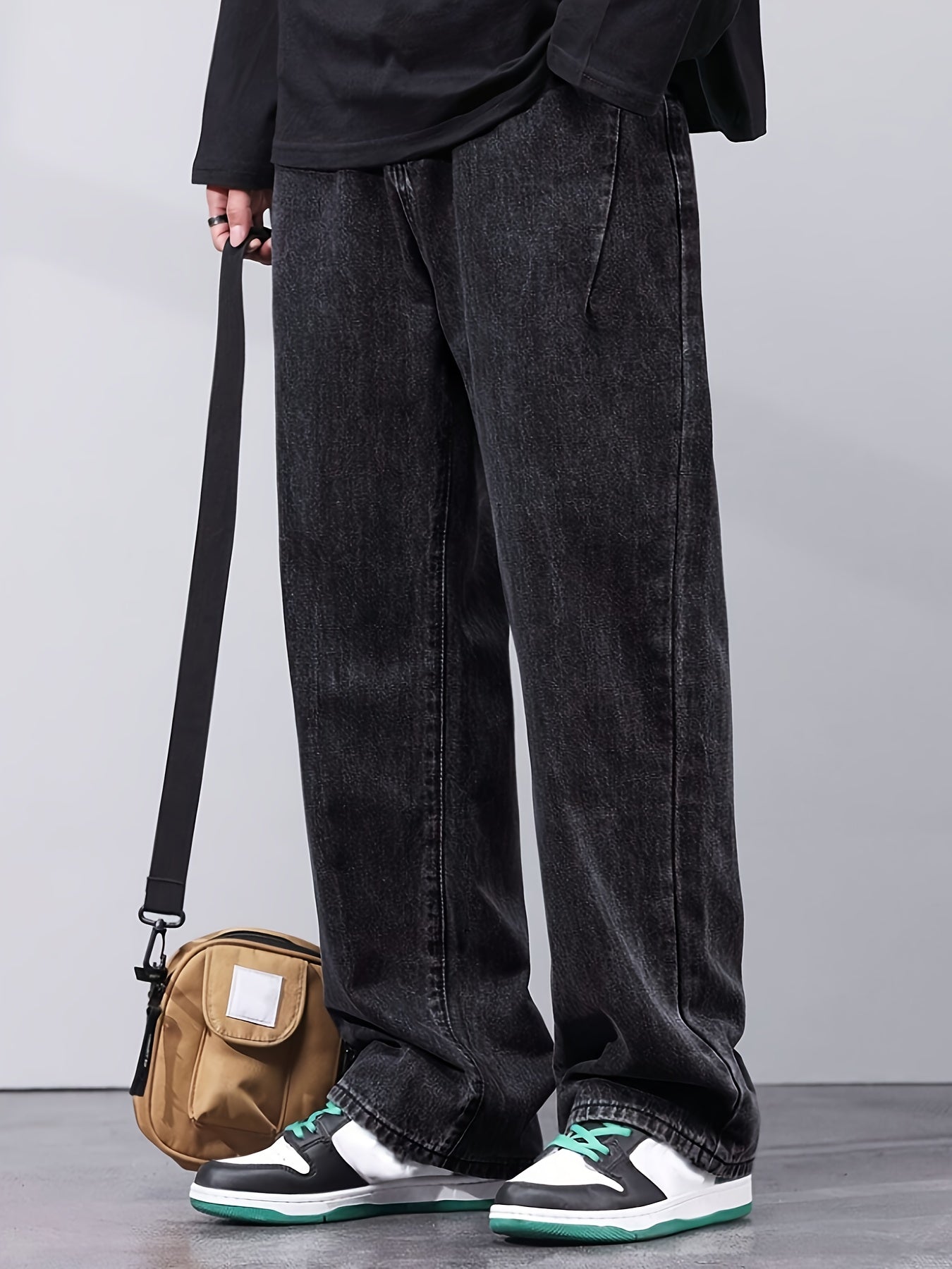 1pc Men'S Casual Denim Jeans - Classic Washed Straight-Leg Pants with Pockets, Non-Stretch Fabric, Regular Fit, All-Season Loose Denim for Adults, Casual Outing Style