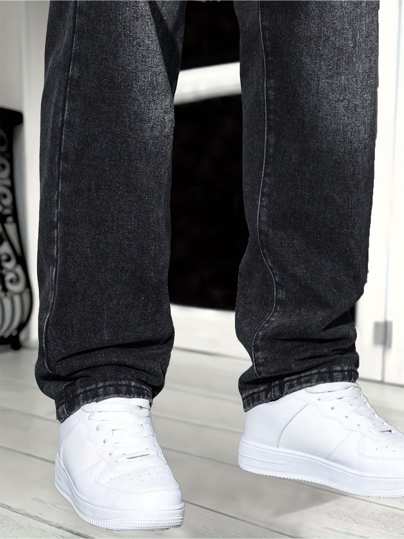 1pc Men'S Classic Solid Color Washed Denim Jeans, Non-Stretch Regular Fit Work Style, All-Season Woven Fabric, Regular Length - Adult Casual Pants