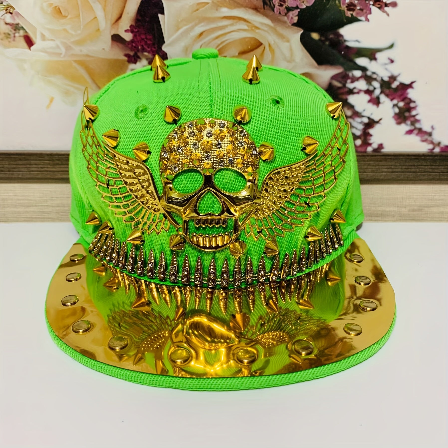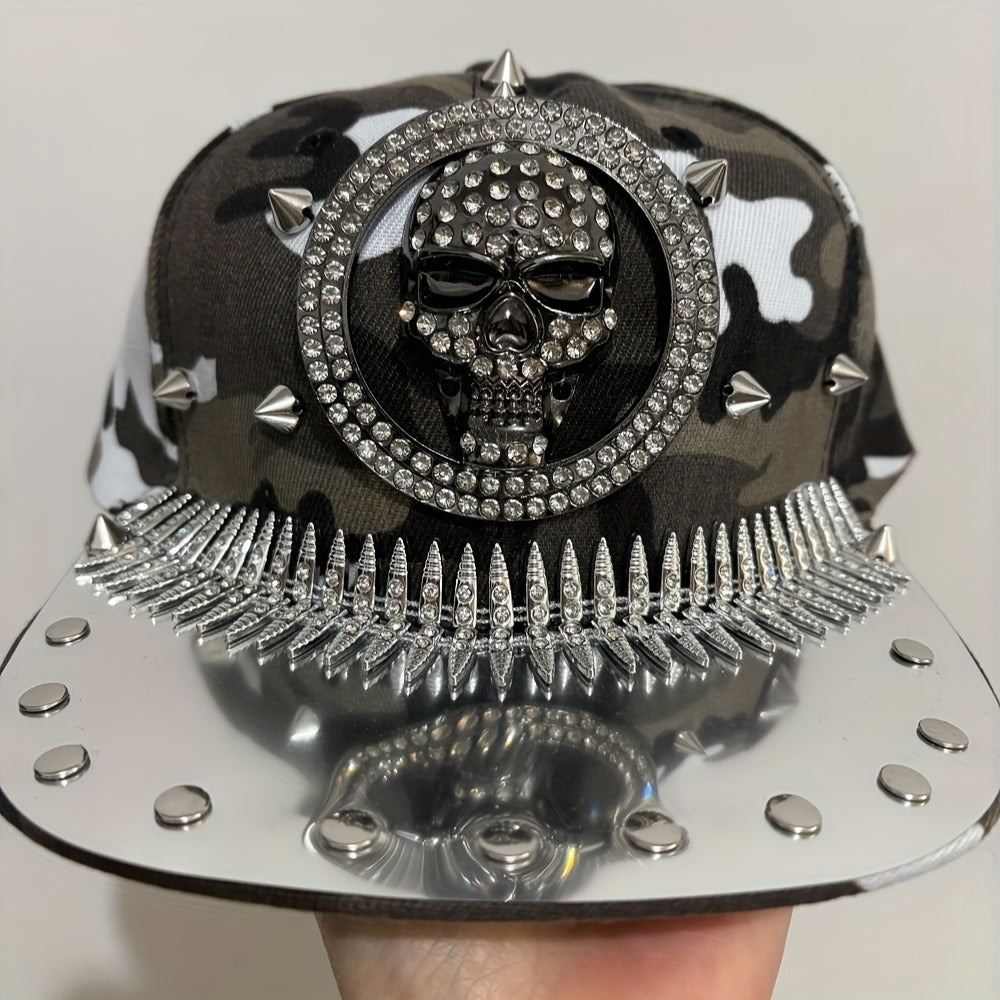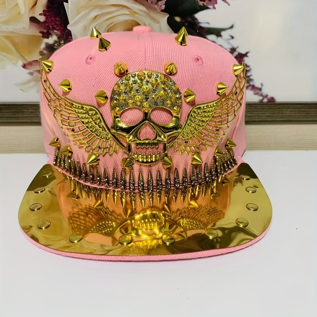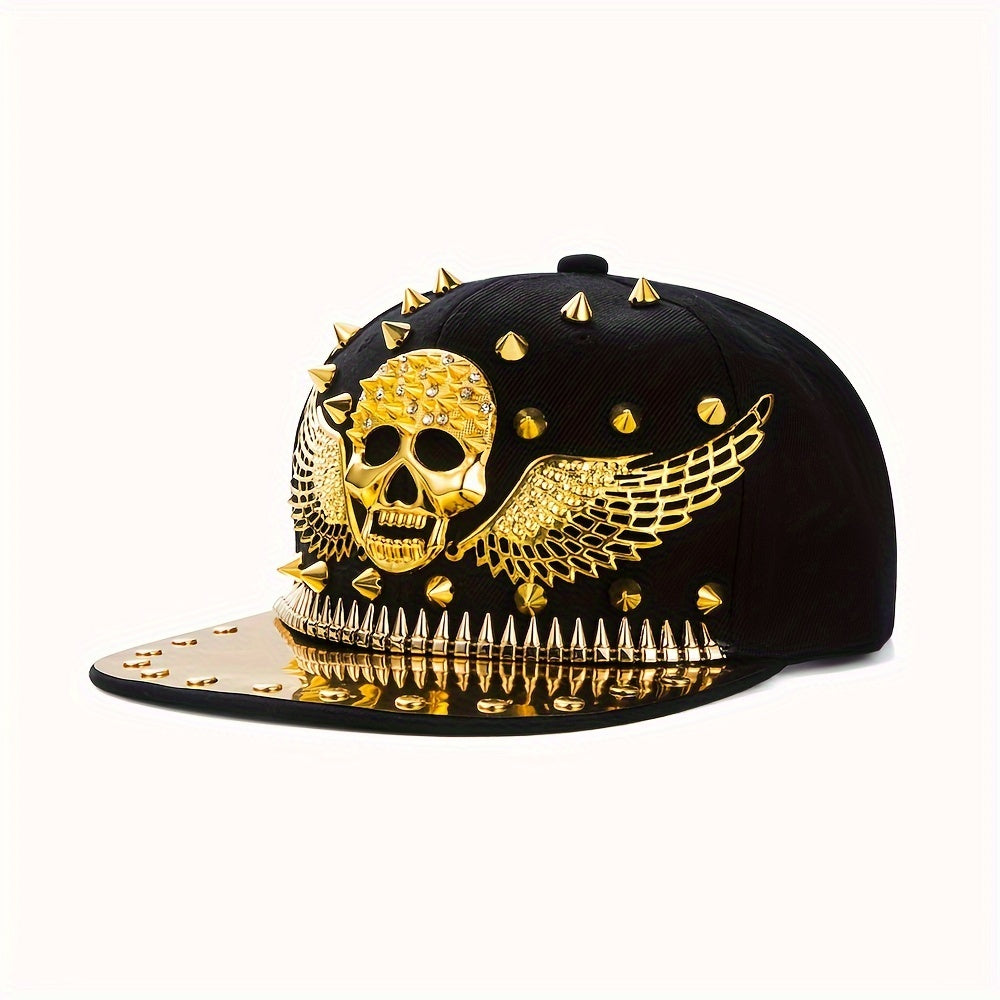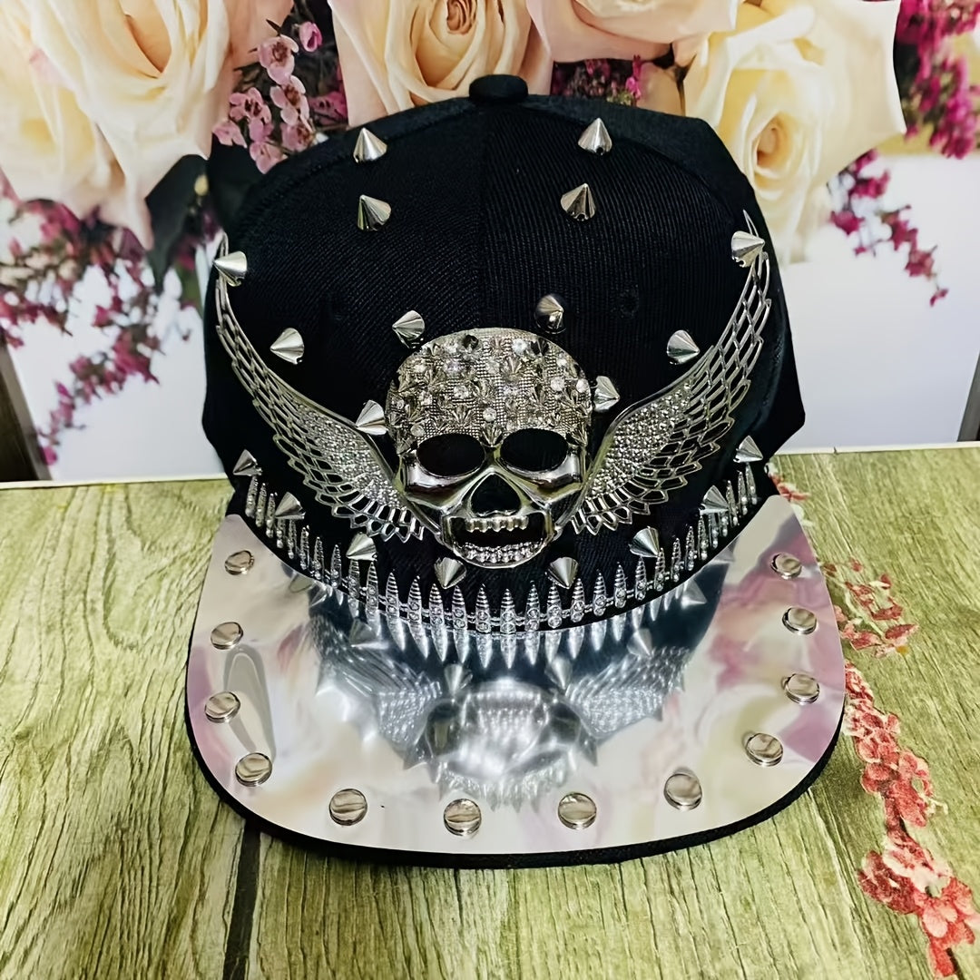 1pc Men'S Fashion Hip-Hop Street Dance Punk Baseball Cap, Lightweight Polyester, Non-Stretch Fabric, Street Style with Skull and Wings Design