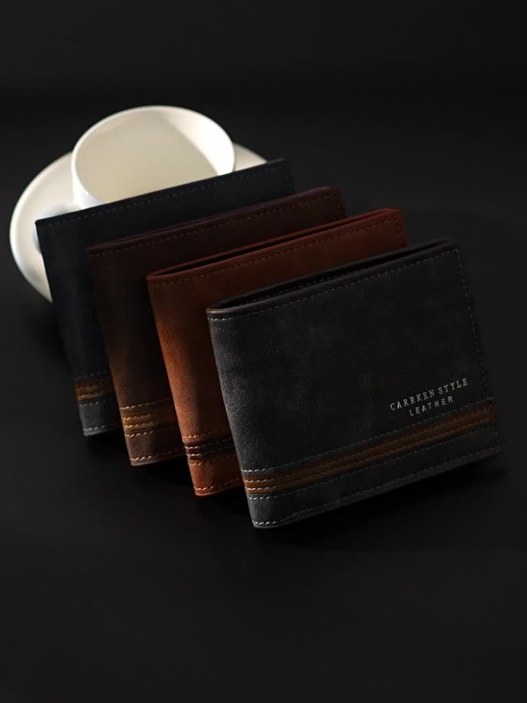 1pc Men's Short Wallet, Fashion Horizontal Multi-card Slots Zipper Coin Purse
