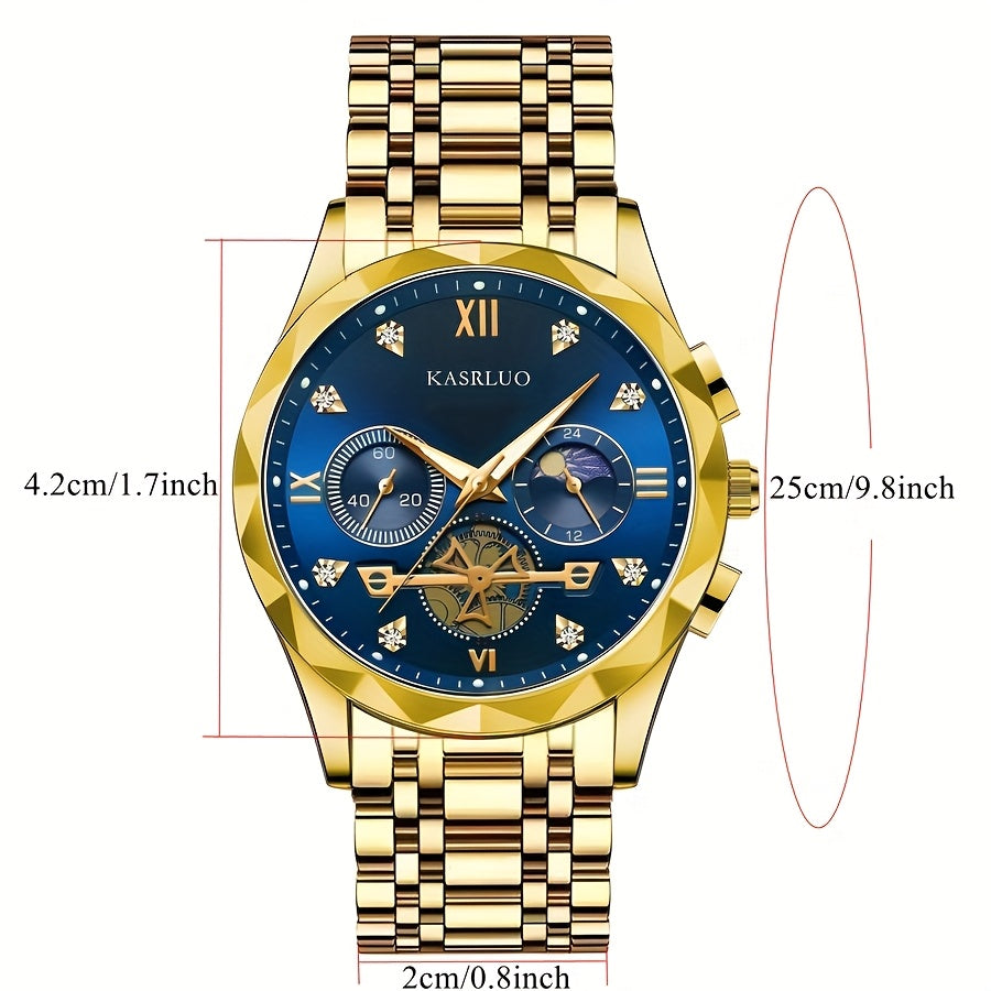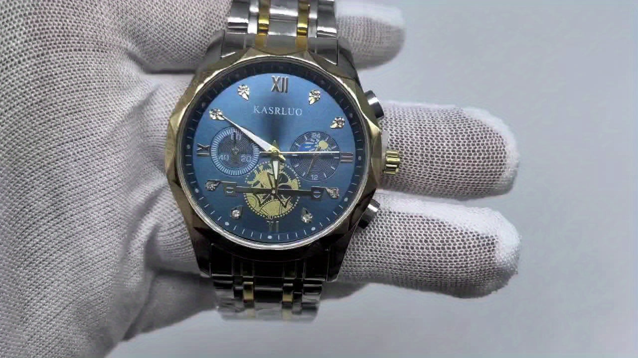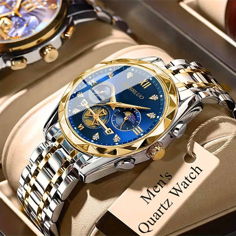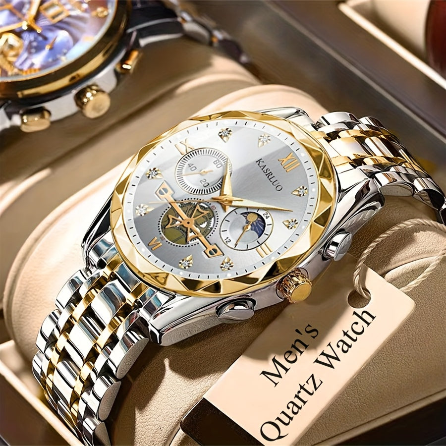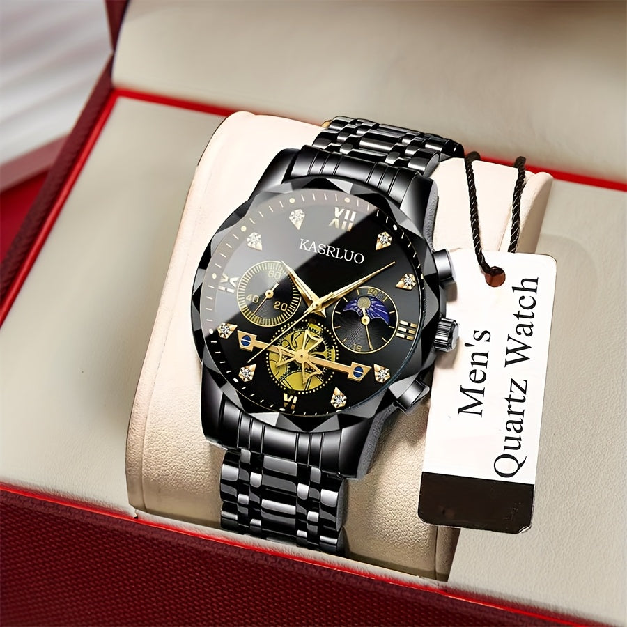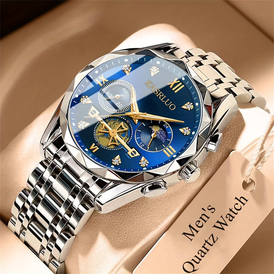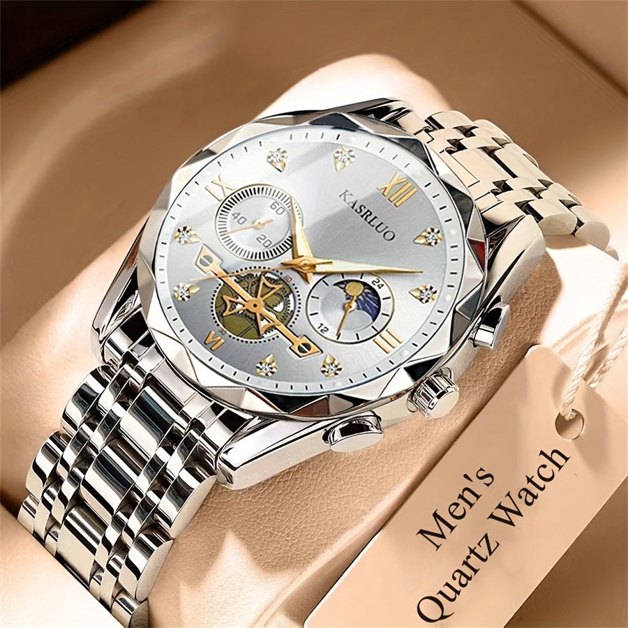1pc Men'S Stainless Steel Quartz Watch with IPX7, Luminous Display, Rhinestone Accents, Scratch-Resistant Dial, Date Window & Chronograph Function - Stylish Casual Timepiece for Casual Attire, Everyday Timepiece | Luminous Wa