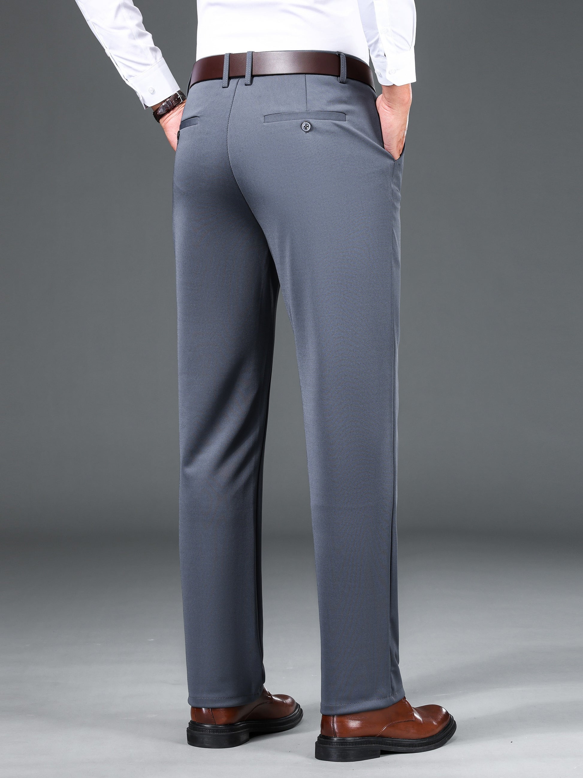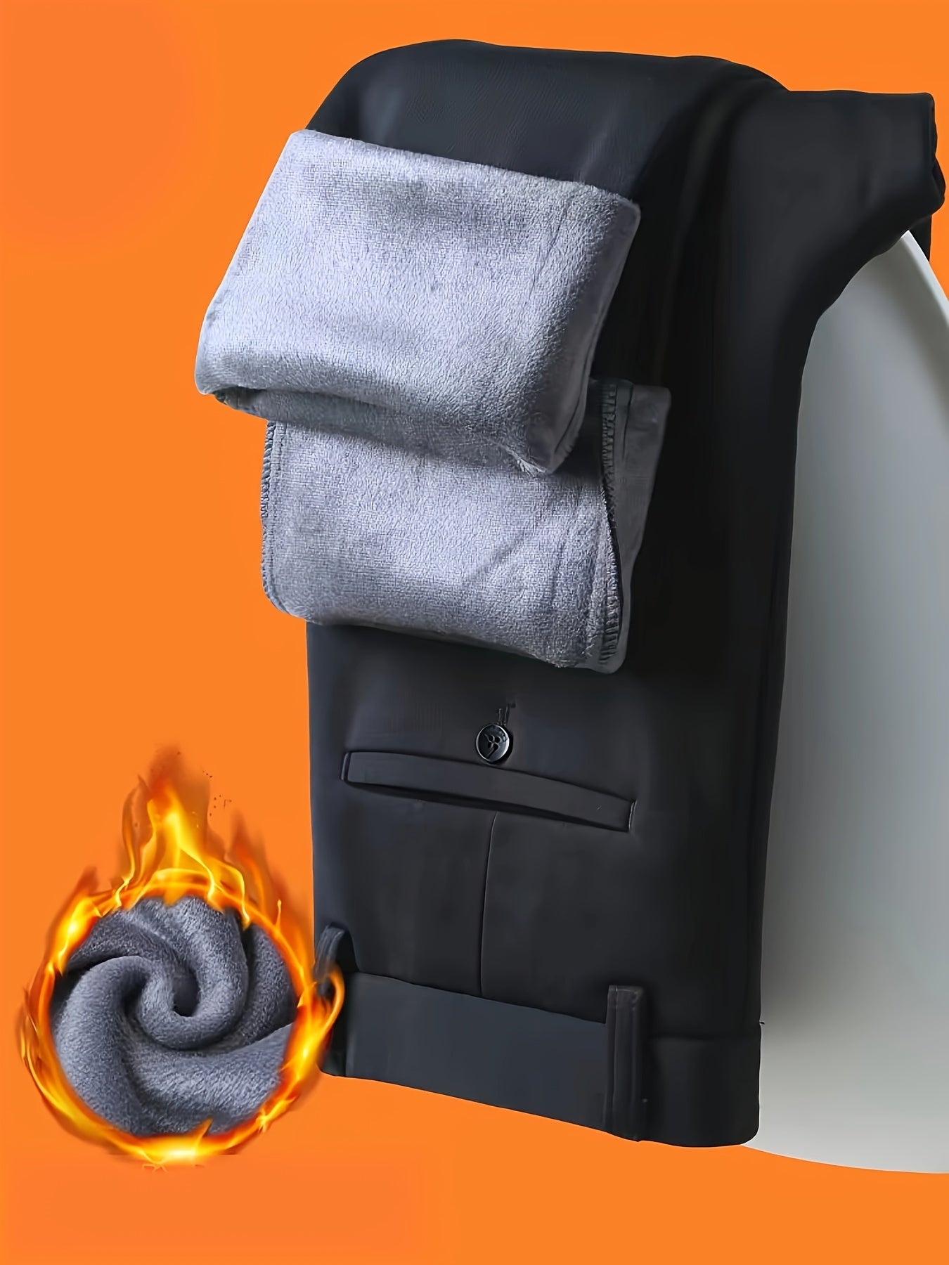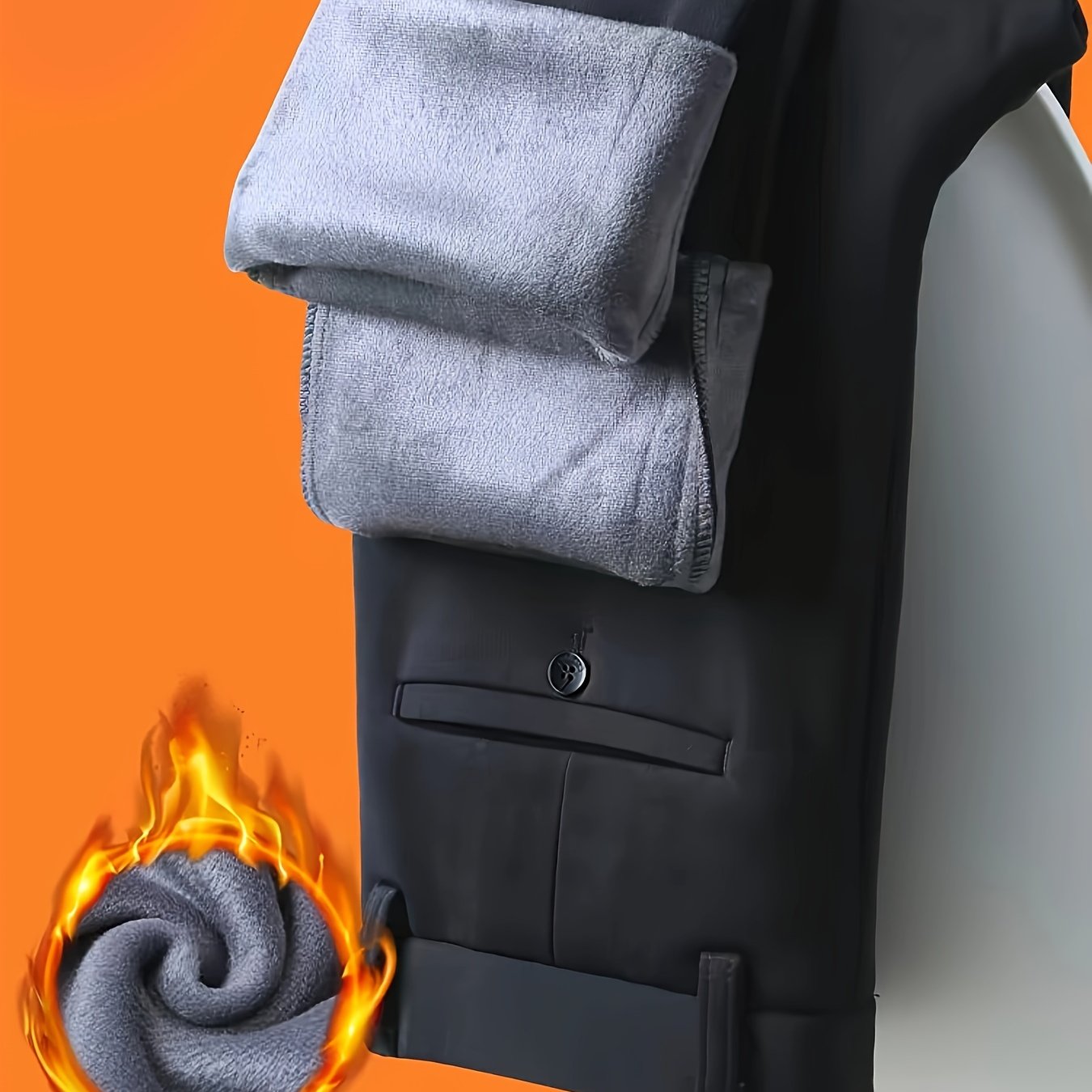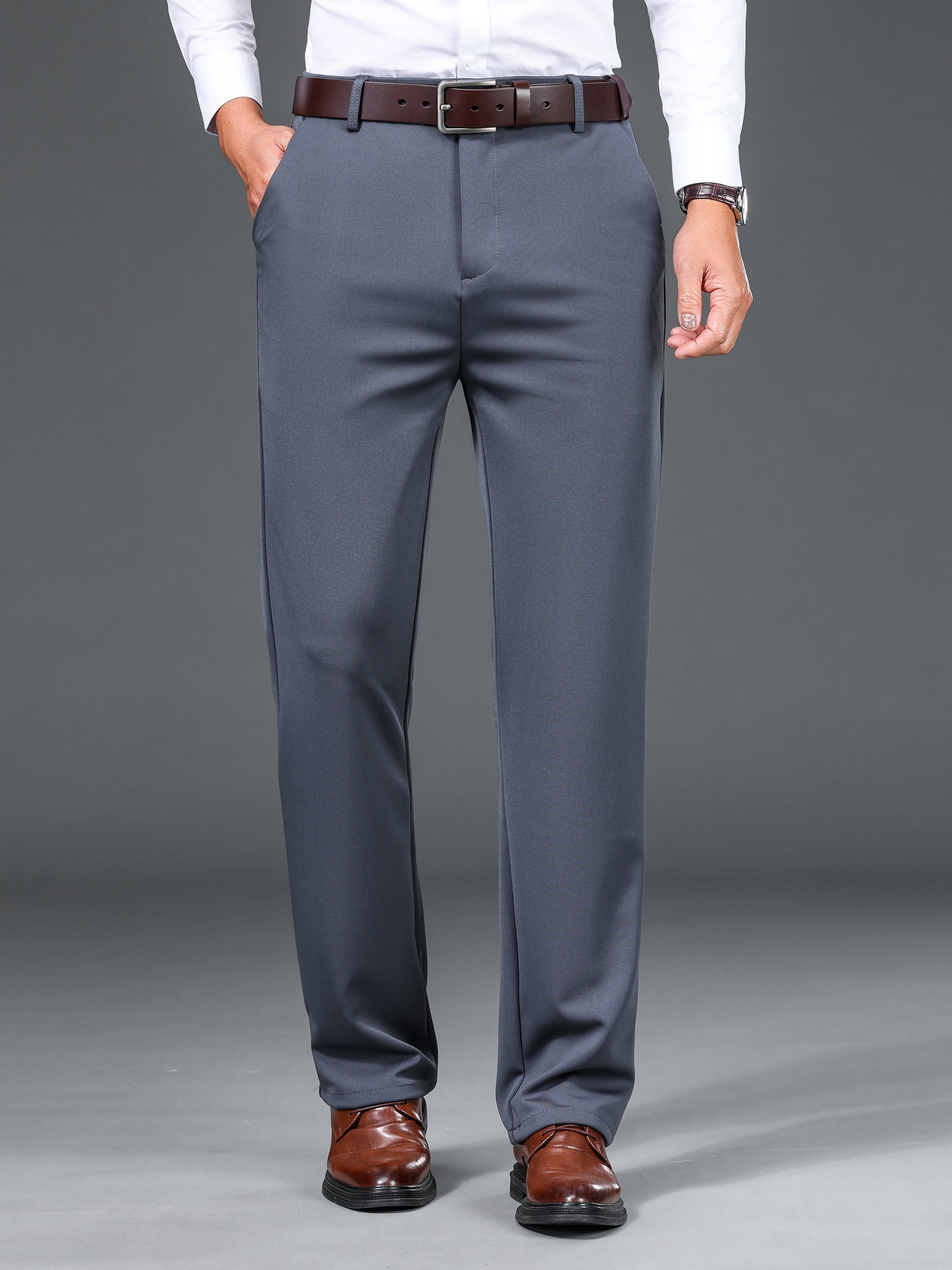 1pc Men'S Warmth Business Casual Pants, Fall/Winter Fleece-Lined Thickened Straight-Leg Trousers with Slant Pockets, Solid Color Knit Fabric Regular Fit Dress Pants with Zipper Closure, Medium Stretch Polyester