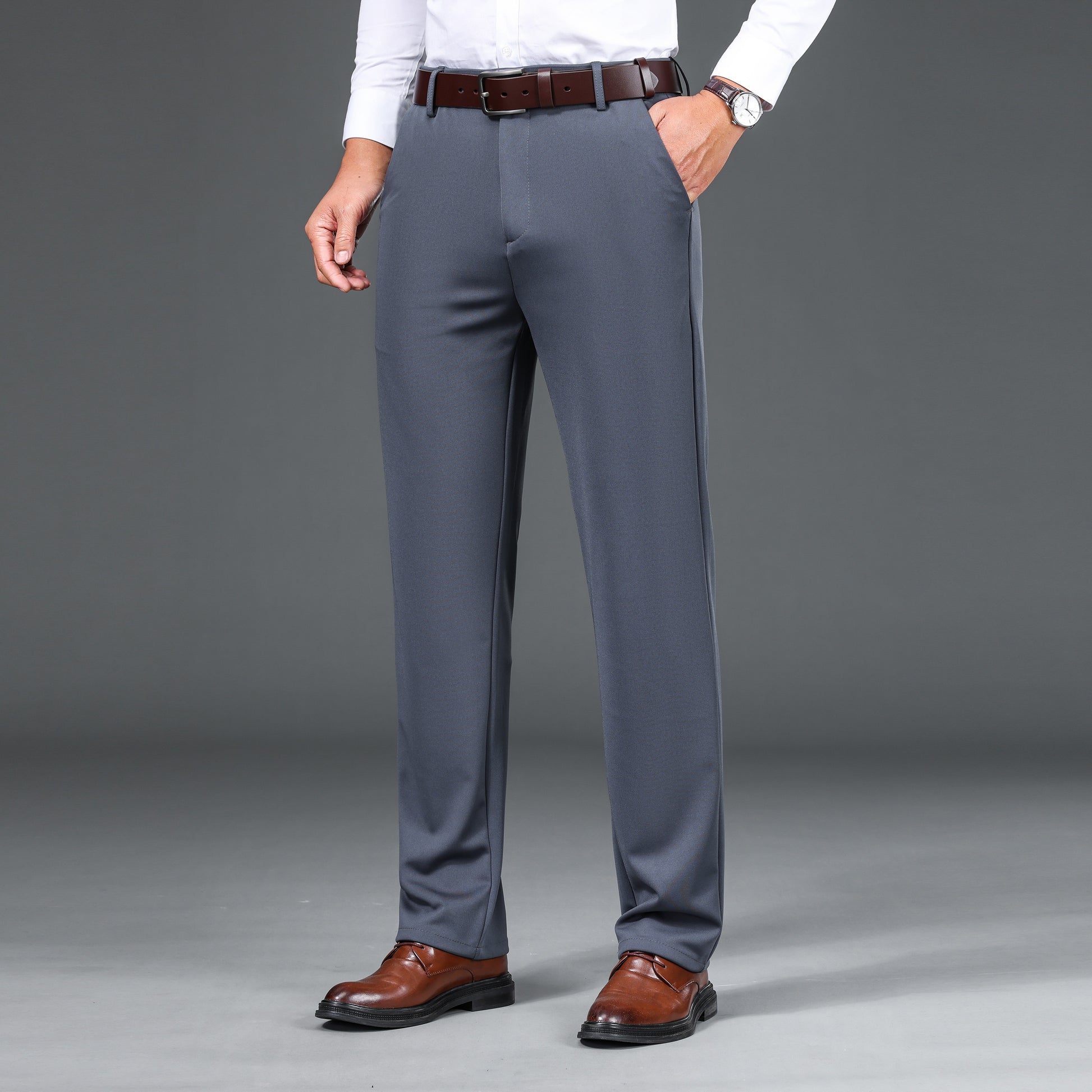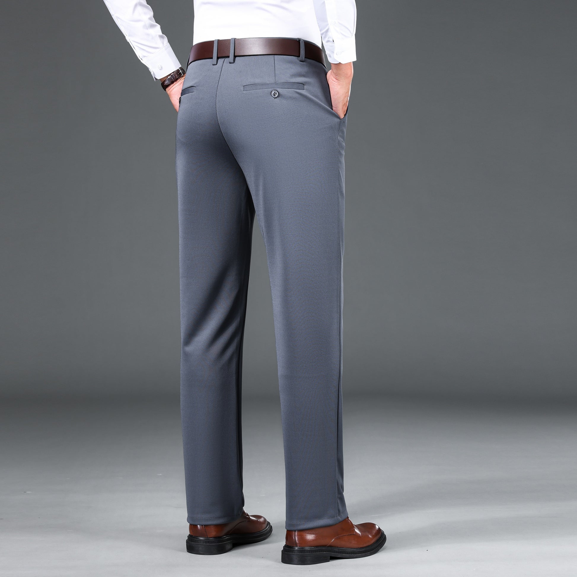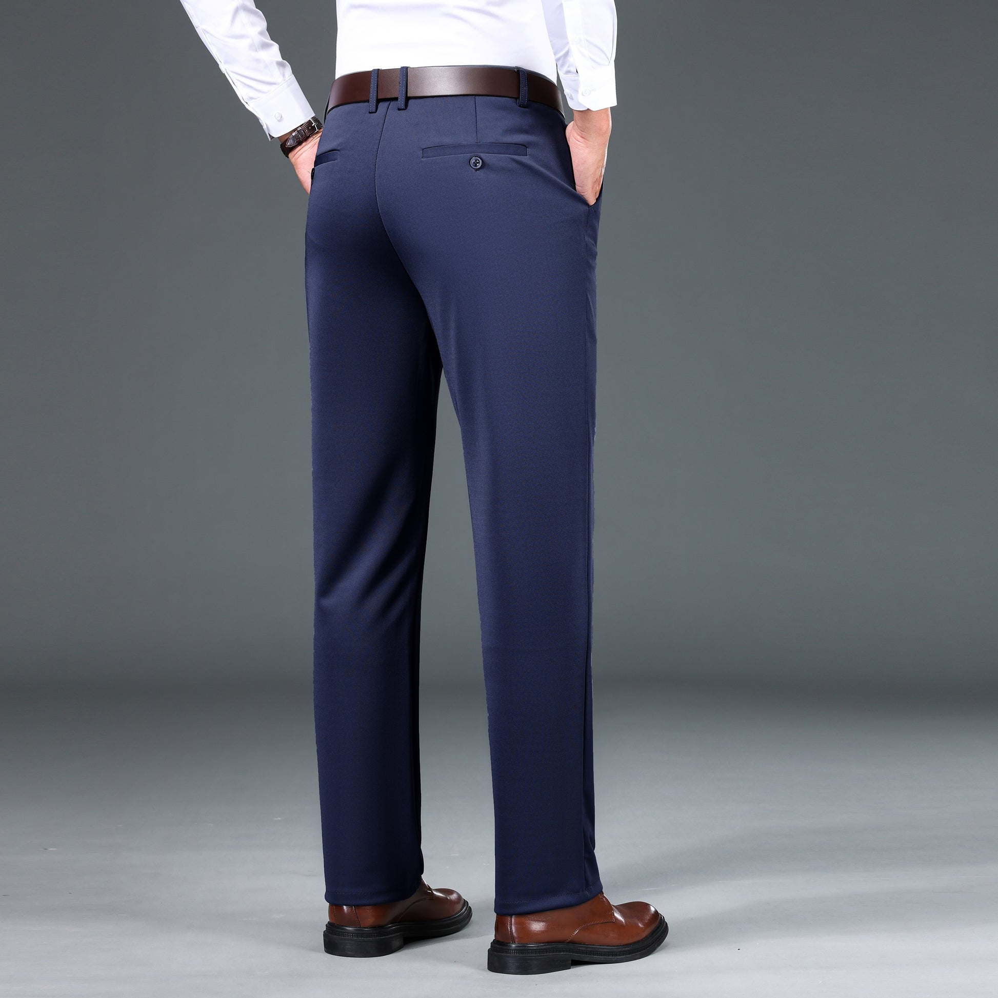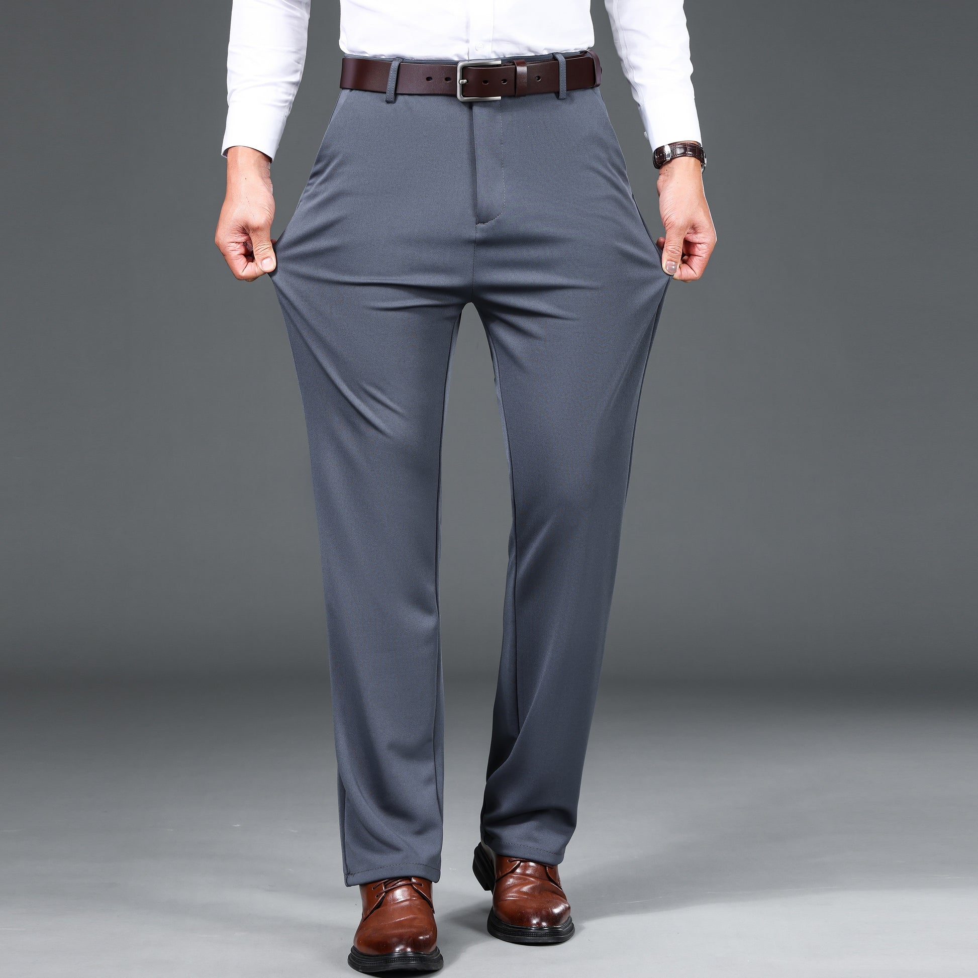 1pc Men'S Warmth Business Casual Pants, Fall/Winter Fleece-Lined Thickened Straight-Leg Trousers with Slant Pockets, Solid Color Knit Fabric Regular Fit Dress Pants with Zipper Closure, Medium Stretch Polyester