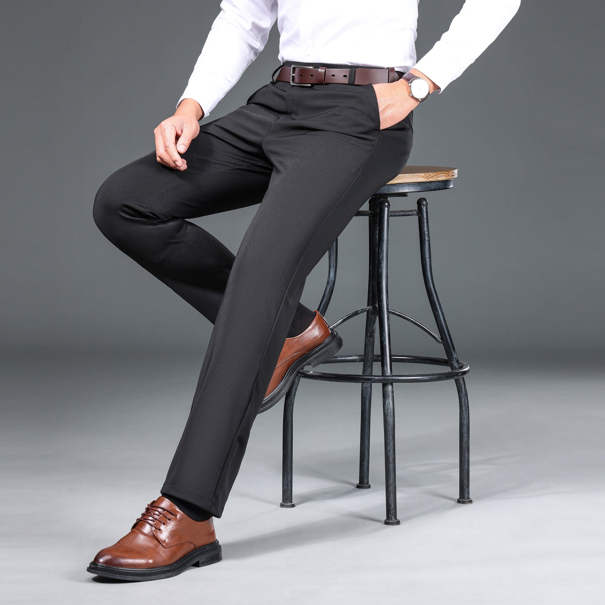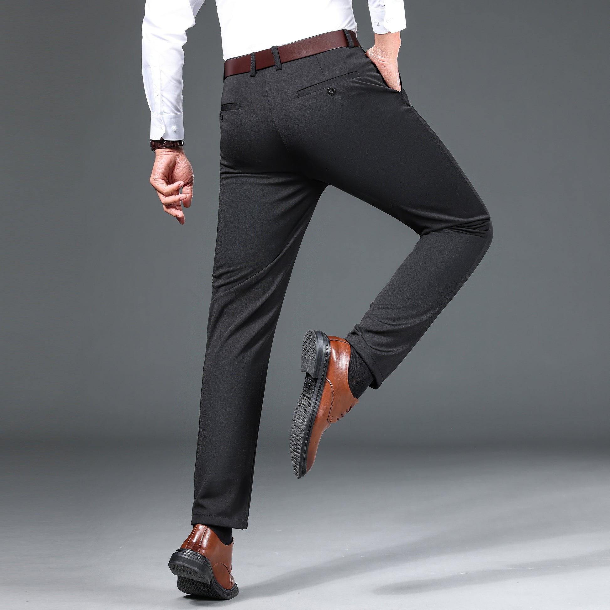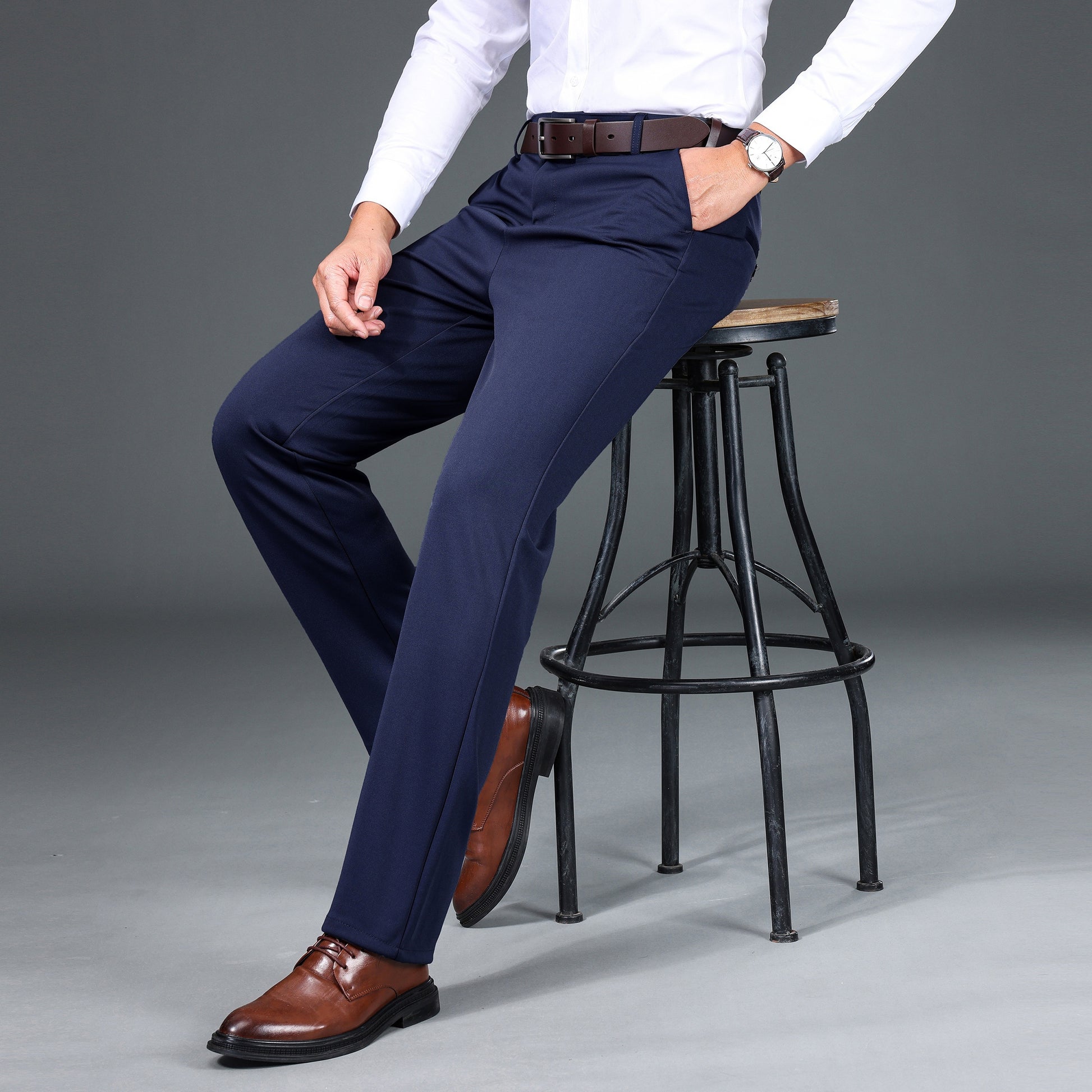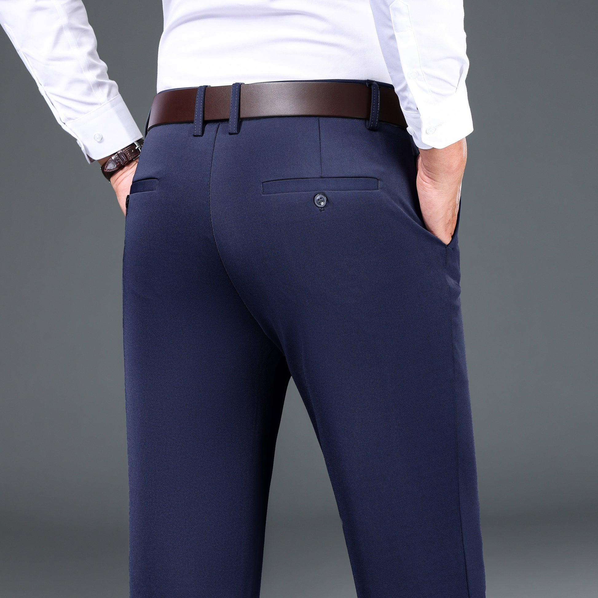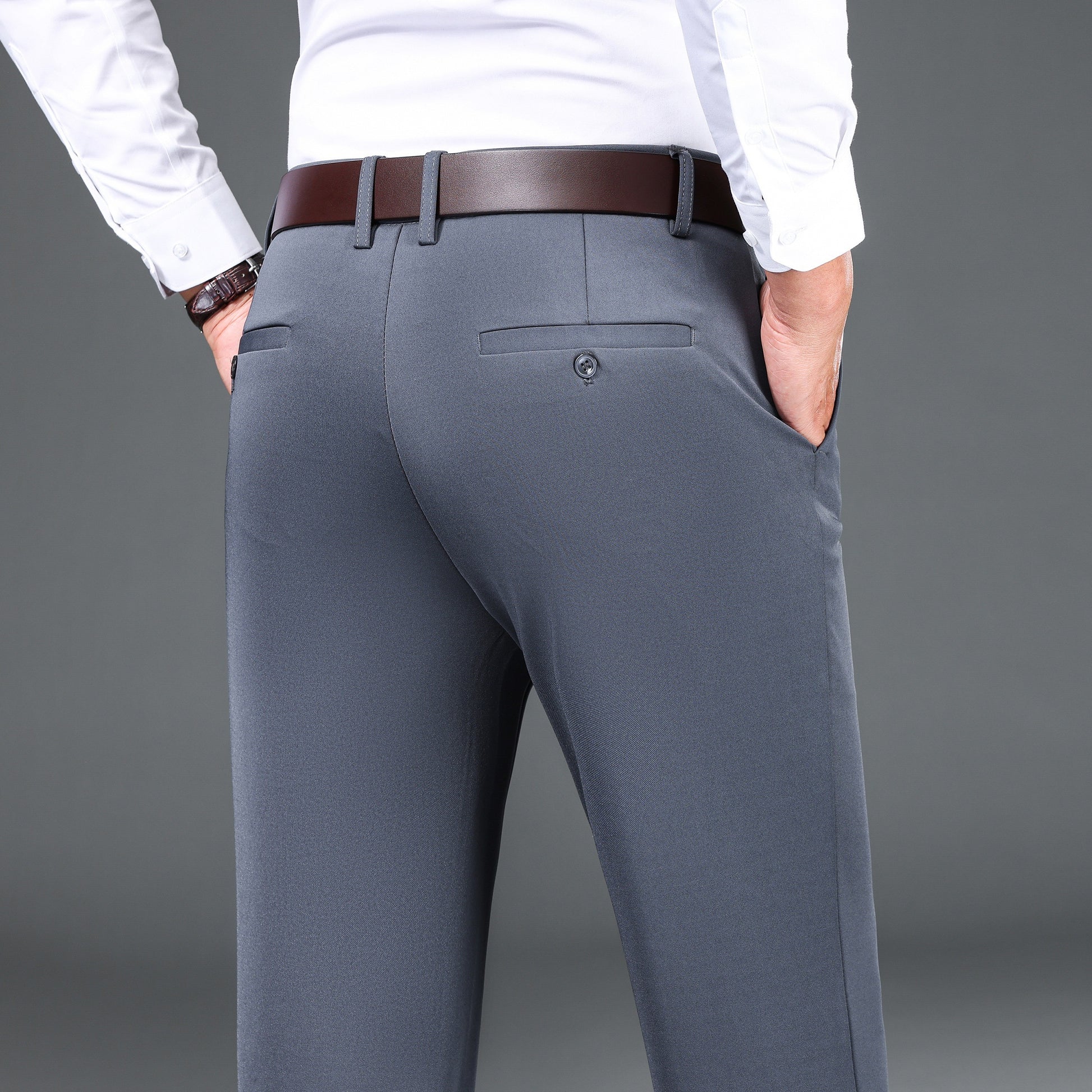 1pc Men'S Warmth Business Casual Pants, Fall/Winter Fleece-Lined Thickened Straight-Leg Trousers with Slant Pockets, Solid Color Knit Fabric Regular Fit Dress Pants with Zipper Closure, Medium Stretch Polyester