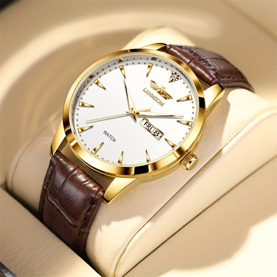 1pc New Men's Quartz Watch with Sunday Calendar and Night Light, Fashionable Wristwatch Ideal Choice for Relatives and Friends Birthday Gifts, Festive Gifts, Brand Electronic Movement Fully Automatic Business Watch