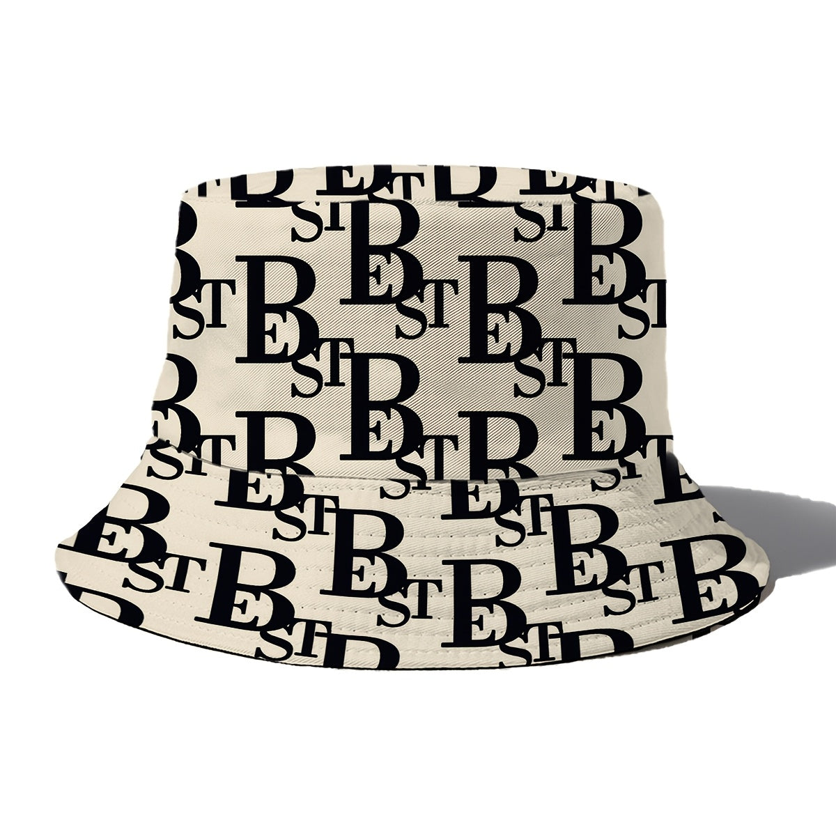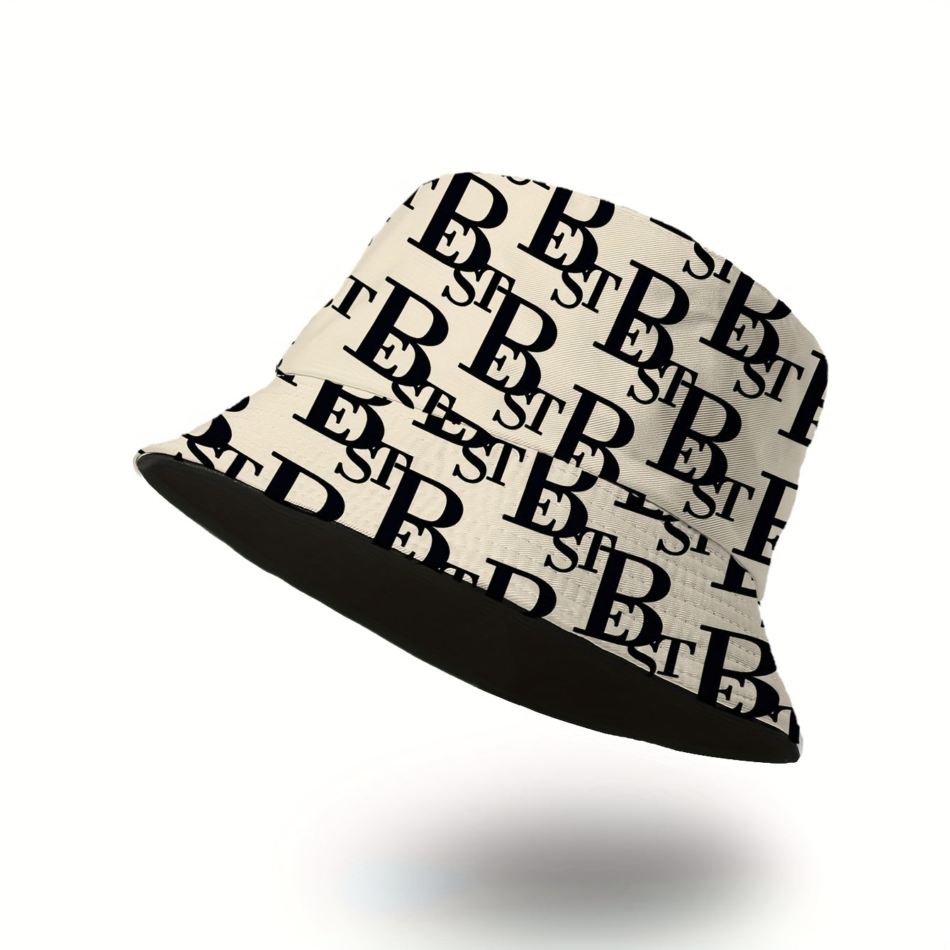 1pc Unisex Bucket Hat with Letter B Print, 100% Polyester, Lightweight, Non-Stretch, Holiday Theme, New Year'S Essential, Outdoor Versatile, Easy to Carry, Woven Craftsmanship, Random Print Pattern