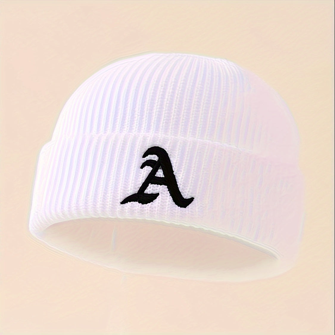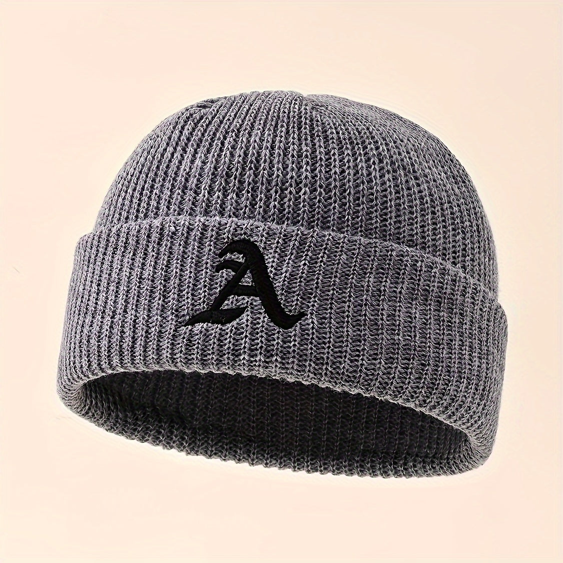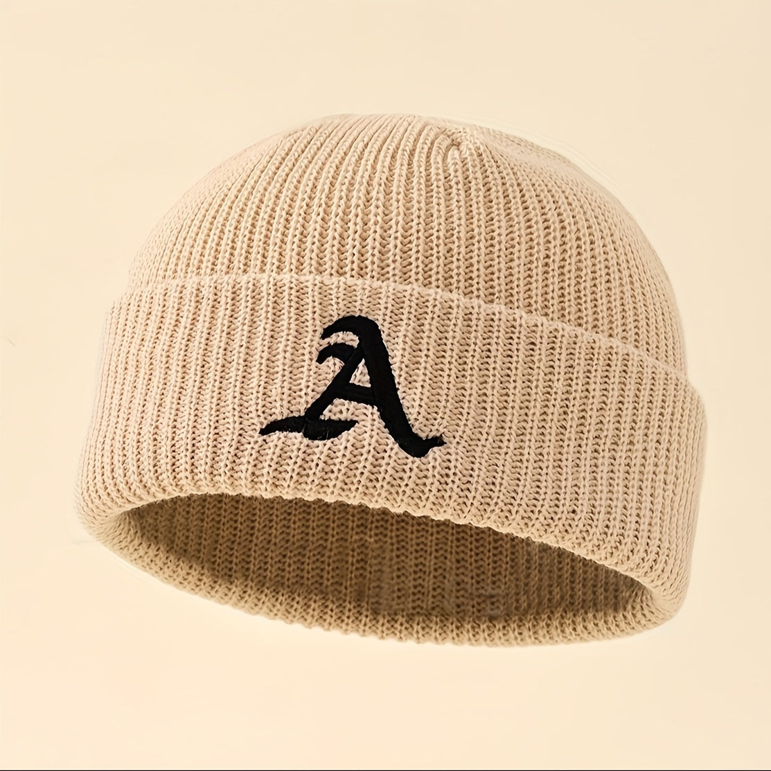 1pc Unisex Classic Brimless Hat With Adjustable Rolled Cuff, Simple Letter Pattern Knitted Hat, Suitable For Winter Daily Wear