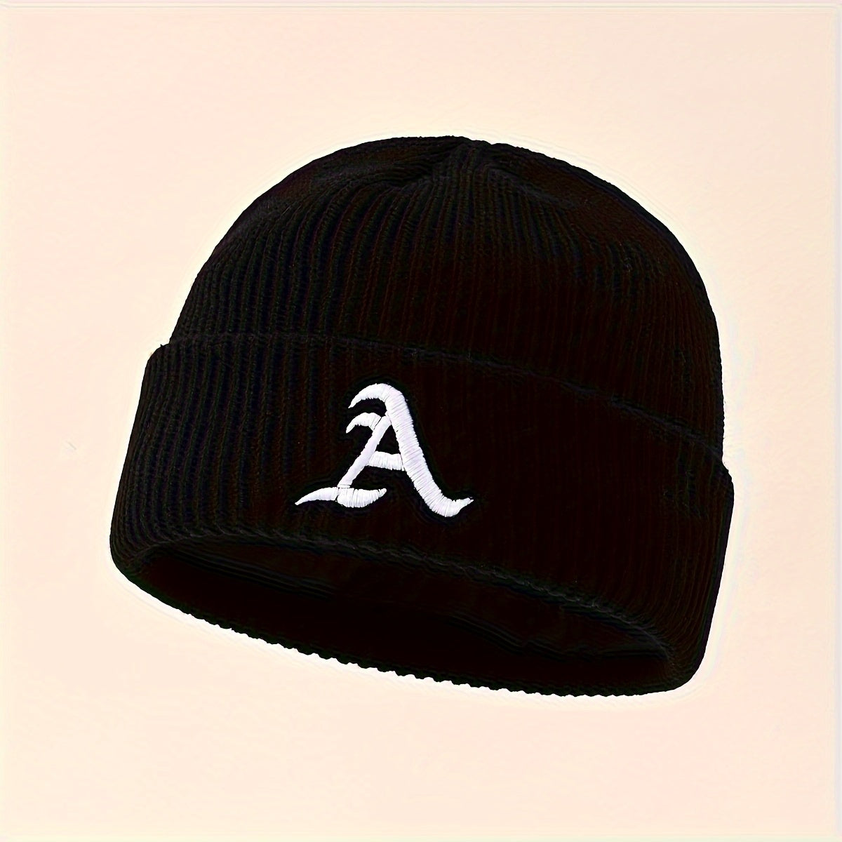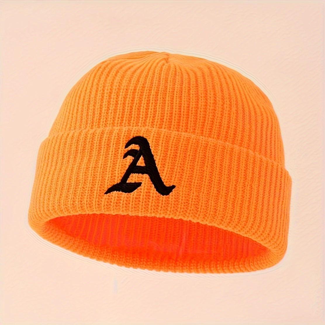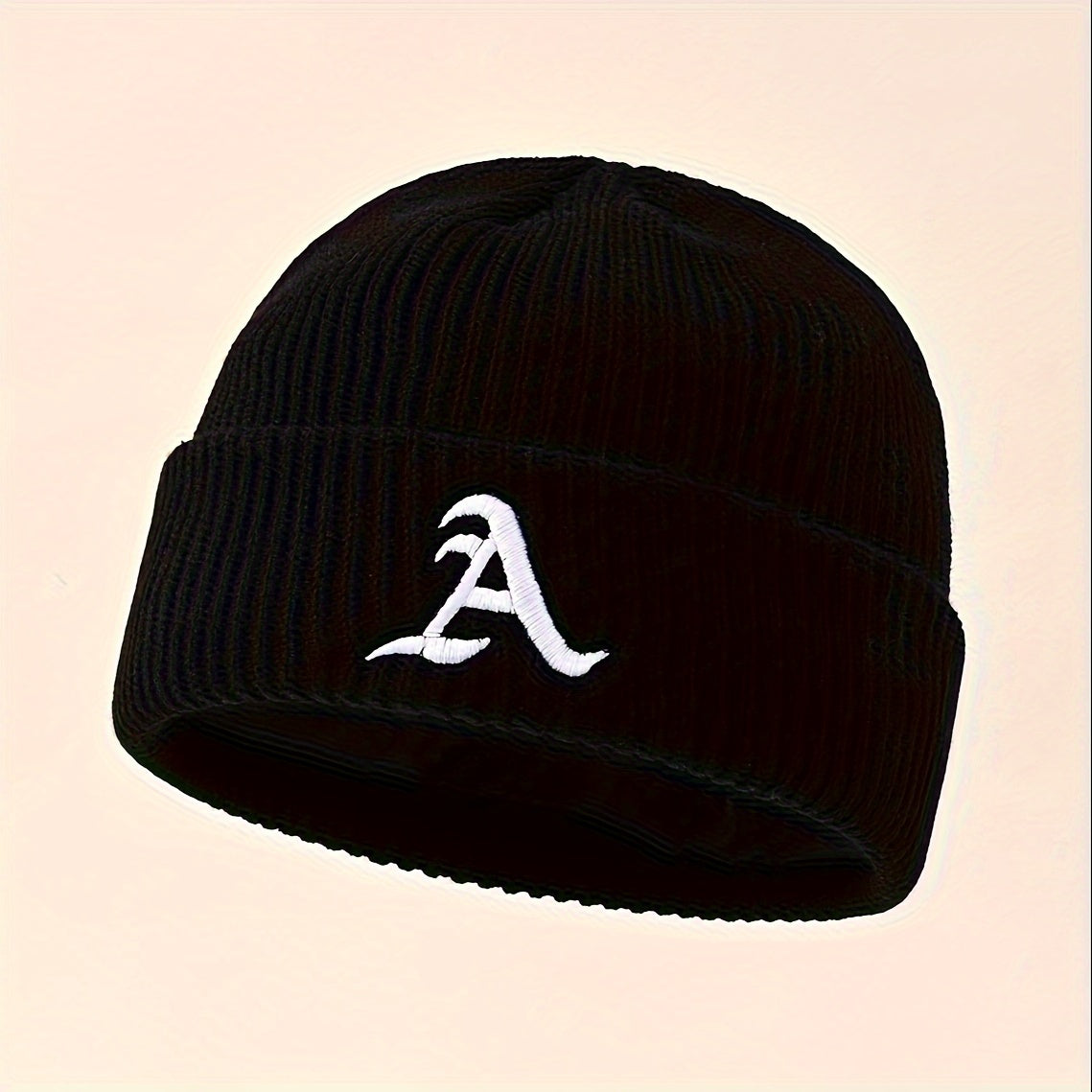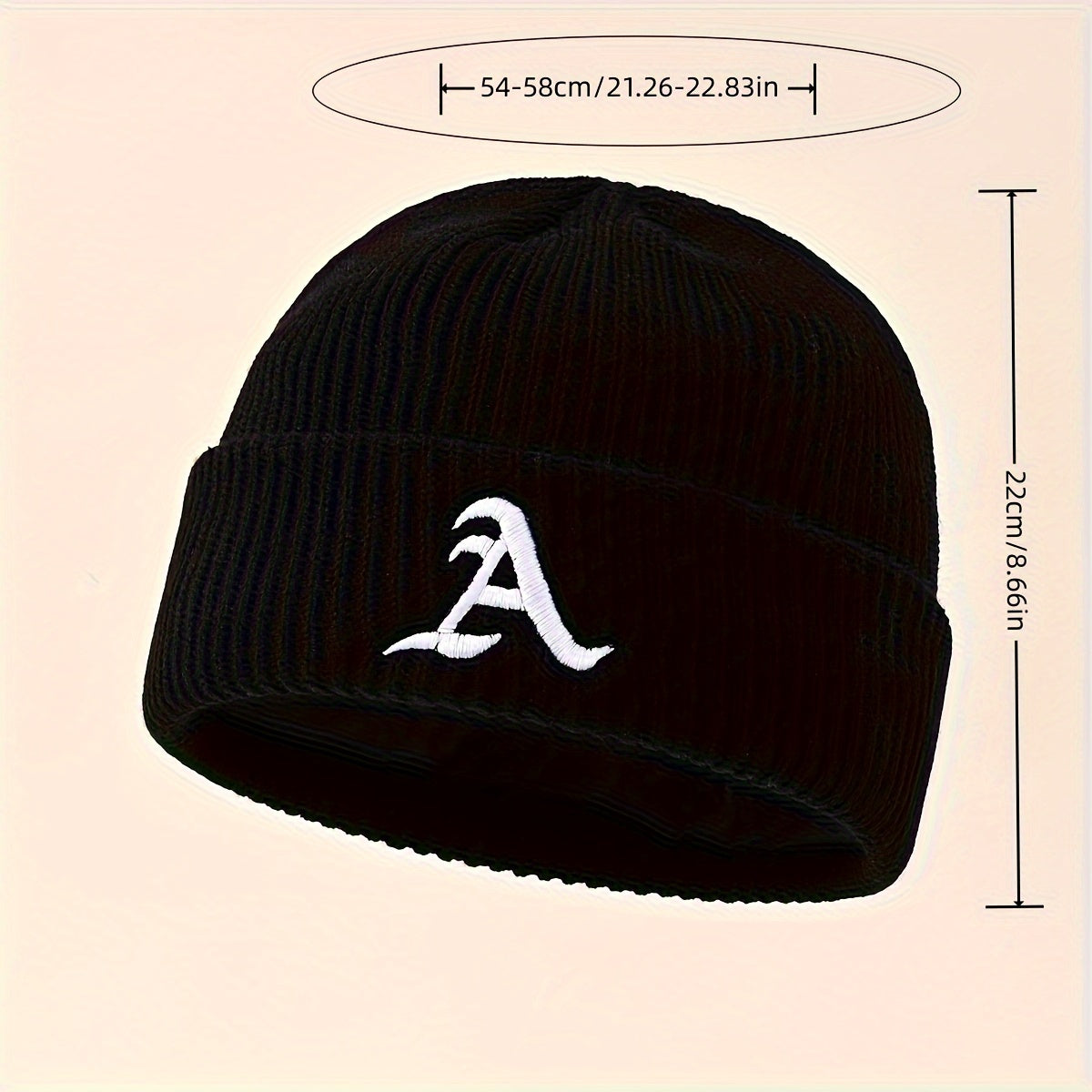 1pc Unisex Classic Brimless Hat With Adjustable Rolled Cuff, Simple Letter Pattern Knitted Hat, Suitable For Winter Daily Wear