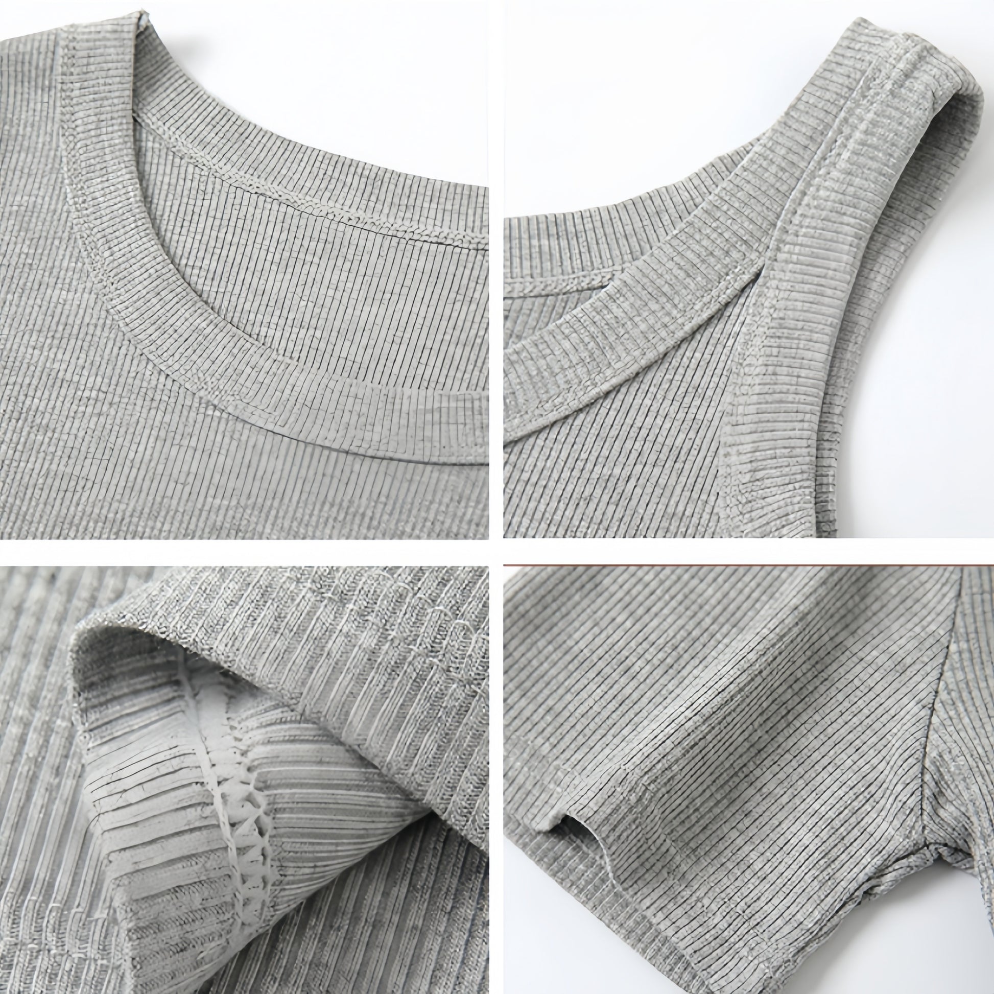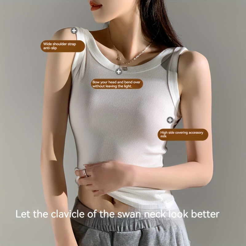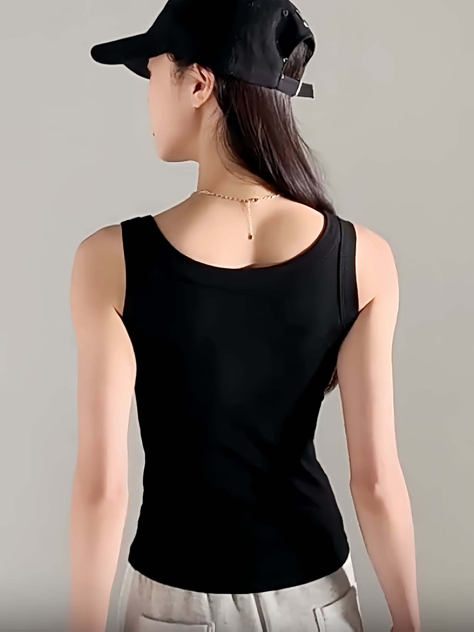 1pc Women'S Casual Ribbed Tank Top, Solid Color Knit Vest with Side Stripe Detail, Low Neck Polyester Camisole for All Seasons, Versatile Layering Piece