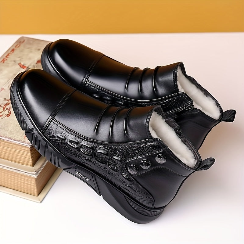 2025 New Winter Men's Thickened Black Mid-Top Business Casual Snow Boots