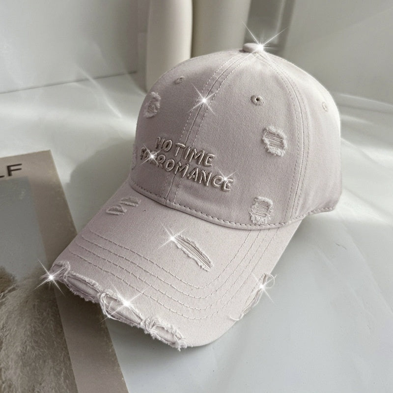 2025 Spring-Summer New Embroidered Letter Distressed Baseball Cap Unisex Versatile Sun Hat for Men and Women