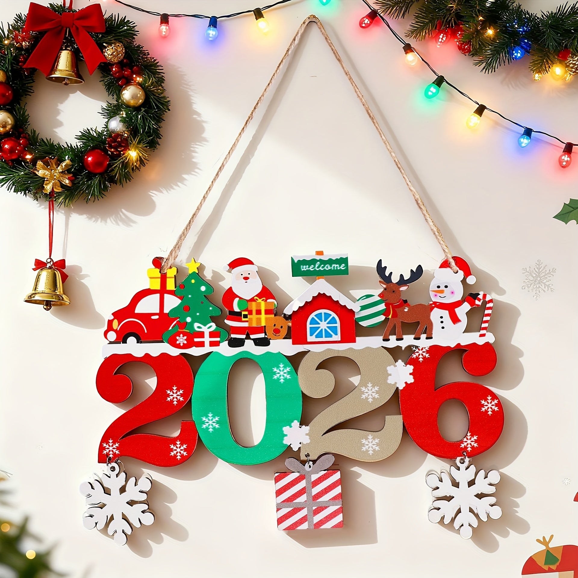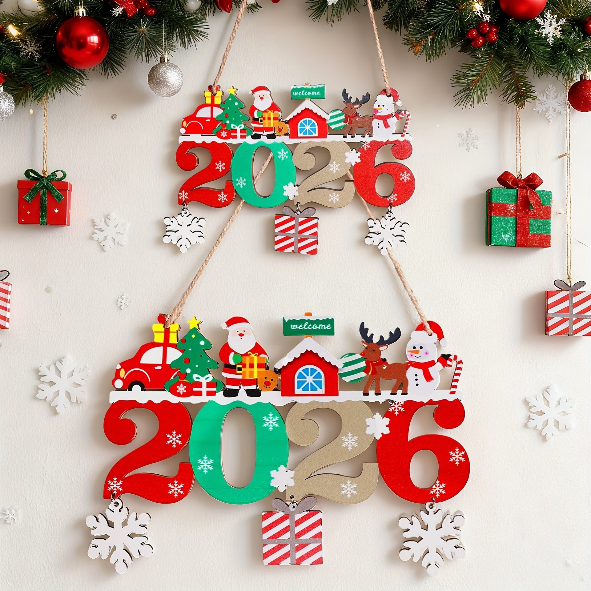 2026 Year-Specific Retro Artificial Wood Christmas Ornaments - Numbered 2026 Centerpiece with Santa Sleigh, Reindeer & Snowman - Irregular Shaped Tree Decorations for Weddings, Parties, New Year's (Compatible with 2024/2025/2
