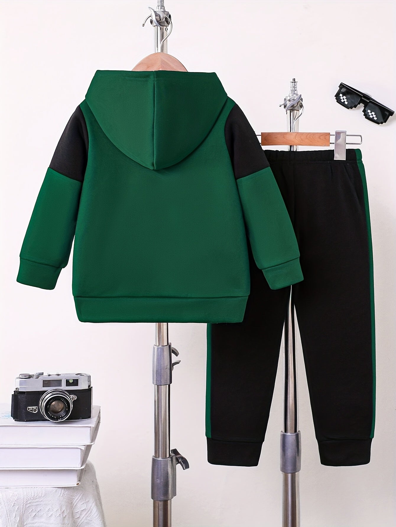 2pcs Boys' Autumn/Winter Fleece-Lined Hooded Sweatshirt and Pants Set, Simple Letter Print Fashion Classic Outfit for Outdoor Sports and Casual Wear, 100% Polyester Knit Stretch Fabric, Ideal Gift Choice for Kids, Perfect for