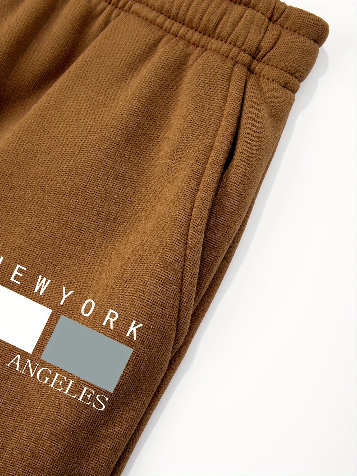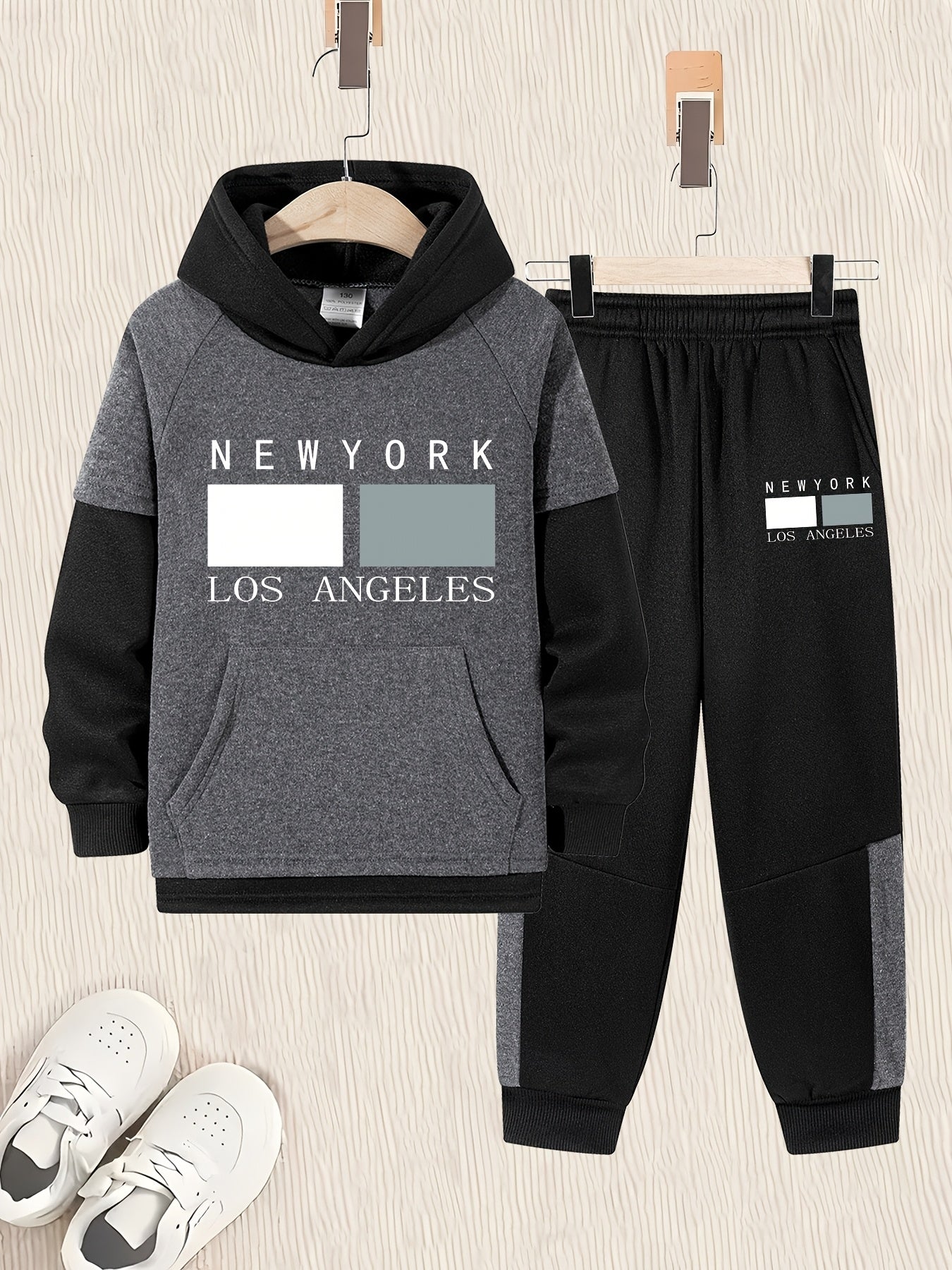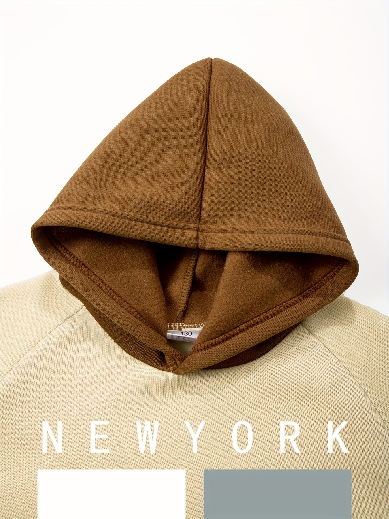 2pcs Boys' Oversized Hooded Sweatsuit & Jogger Pants Set with Letter Print - Beige & Brown Casual Winter Outfits, Thick Warm Fabric, Machine Washable, Pockets, Elastic Waist & Cuffed Hem for Play & Casual Attire - Ideal for L